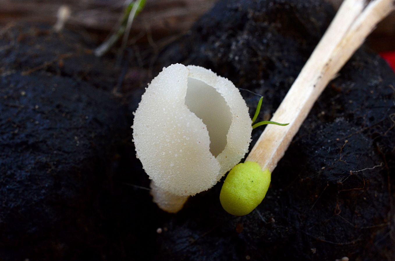 Auch aufgrund des Standortes (direkt auf Dung) und der Größe gut von Peziza vesicolosa zu trennen.