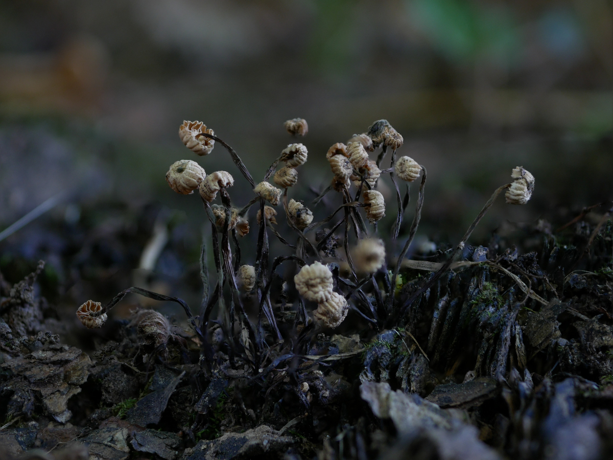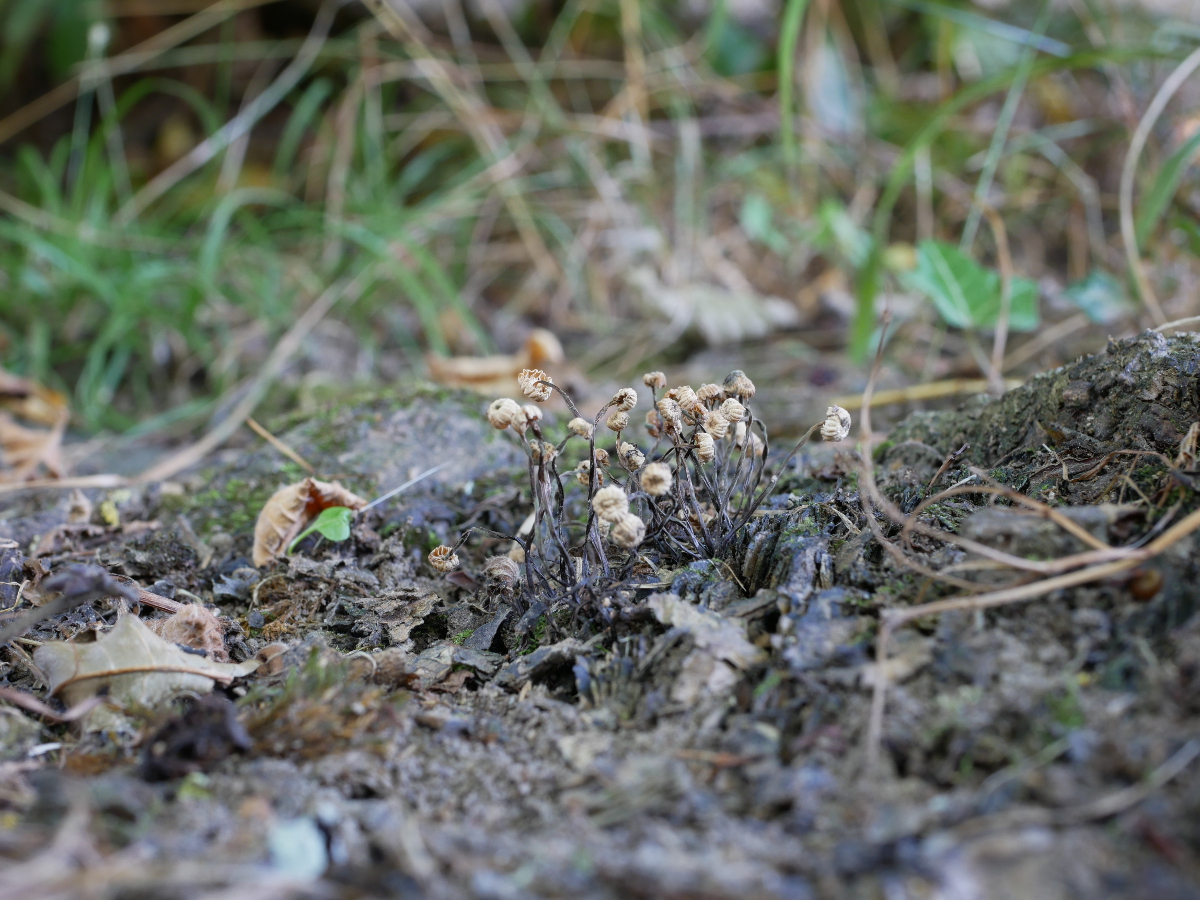 Ursache ist bei einem Beitrag weiter unten: "kleine weiße Pilzchen". Ich wollte die Hüte nicht überbelichten und habe nicht auf die Stiele geachtet. Dass die Stiele durcheinander wachsen, gehört für mich dazu. Das gezackte Blatt habe ich eigens dazugelegt, damit es nicht ganz so trostlos aussieht. Obwohl klein war es schon wieder zu groß. Das Abschneiden sah ich nicht (als tragisch an). Mit dem Hintergrund hätte ich vielleicht was schummeln können.