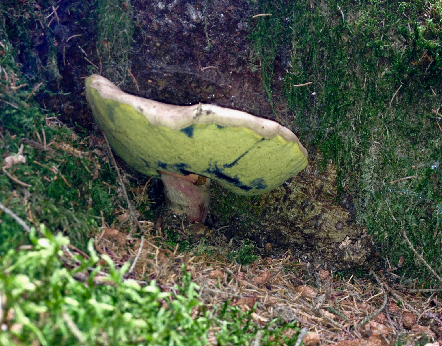 gestern Vormittag war es erfreulich kühl, also habe ich einen ausgiebigen Waldspaziergang unternommen und oh Wunder, einen Pilz entdeckt. Was für ein Tag! Nicht dieses unkaputtbare Porlingsgedöns, sondern einen richtigen mit einem schönen Fuß. Nicht etwa ausgeliehen von einer Pilzausstellung oder aus der Konserve sondern ganz echt! An diesem sensationellen Schönfußröhrlingsfund will ich Euch gerne teilhaben lassen. Hier ist er: