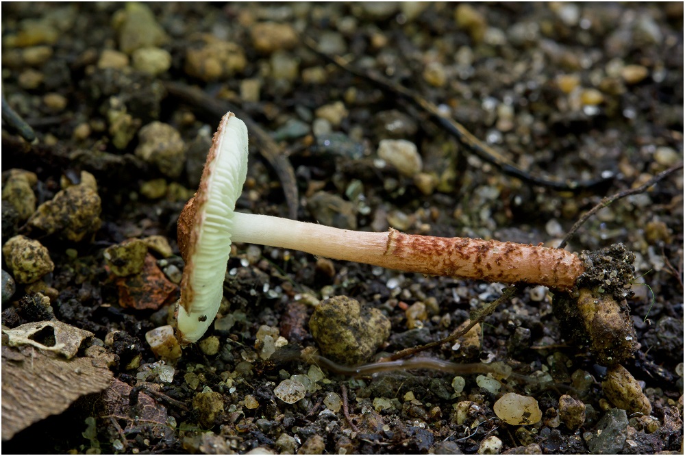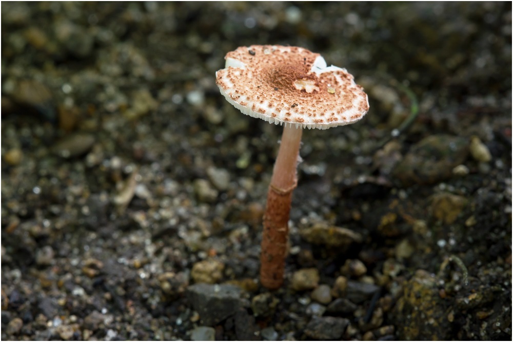 Bei dem Überraschungsfund handelt es sich um Lepiota rubrobrunnea, leider konnte ich nur einen Fruchtkörper finden, aber vielleicht tauchen bald weitere Frk. auf.