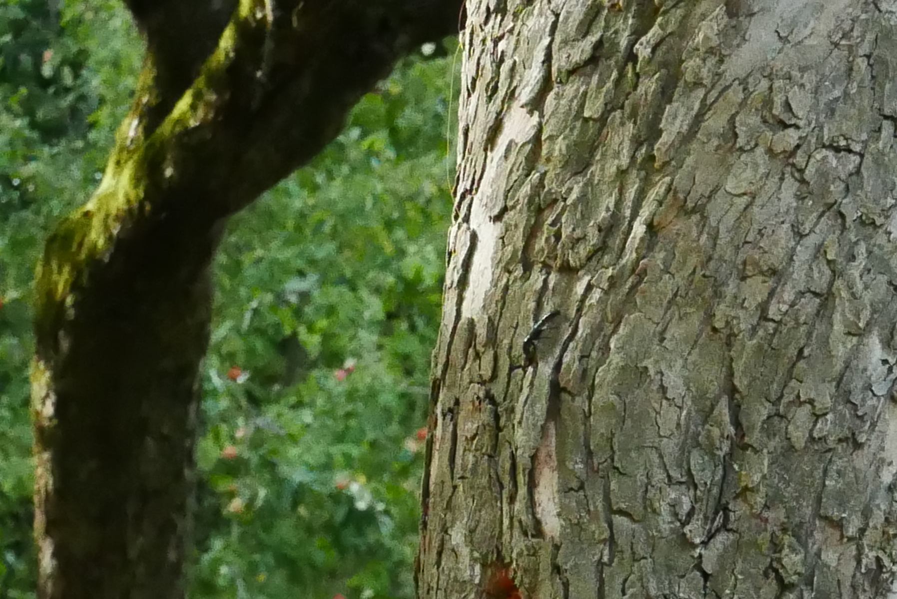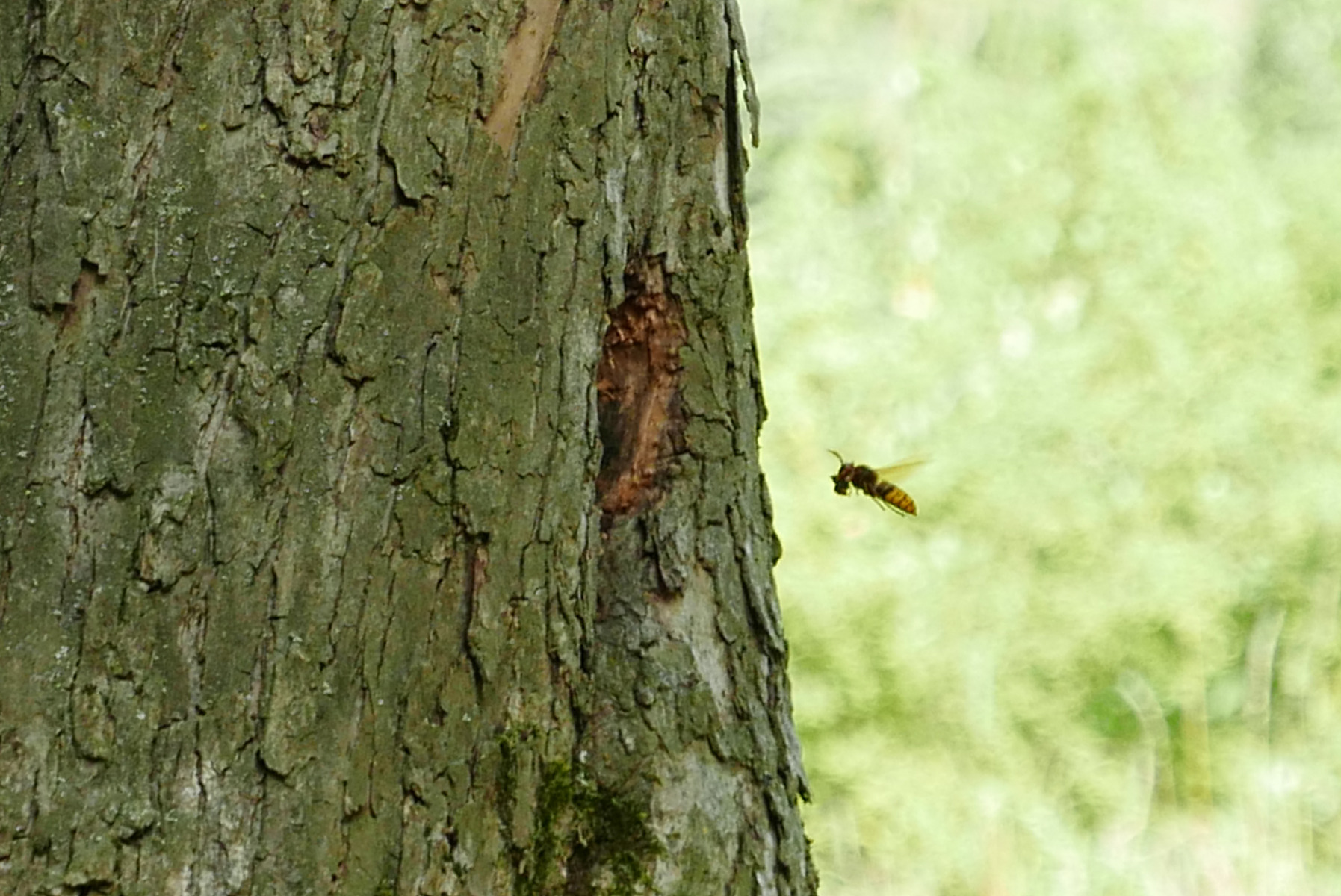 11. Auf dem Rückweg über eine Streuobstwiese entdeckten wir ein Hornissennest in einem hohlen Apfelbaum. Wow, spannend, diese Tiere. Manche trugen andere Insekten ins Nest, andere hatten unsichtbare Fracht bei sich. Am Eingang war immer mindestens eine Wächterin zu sehen, die die einfliegenden Arbeiterinnen genau beäugte.