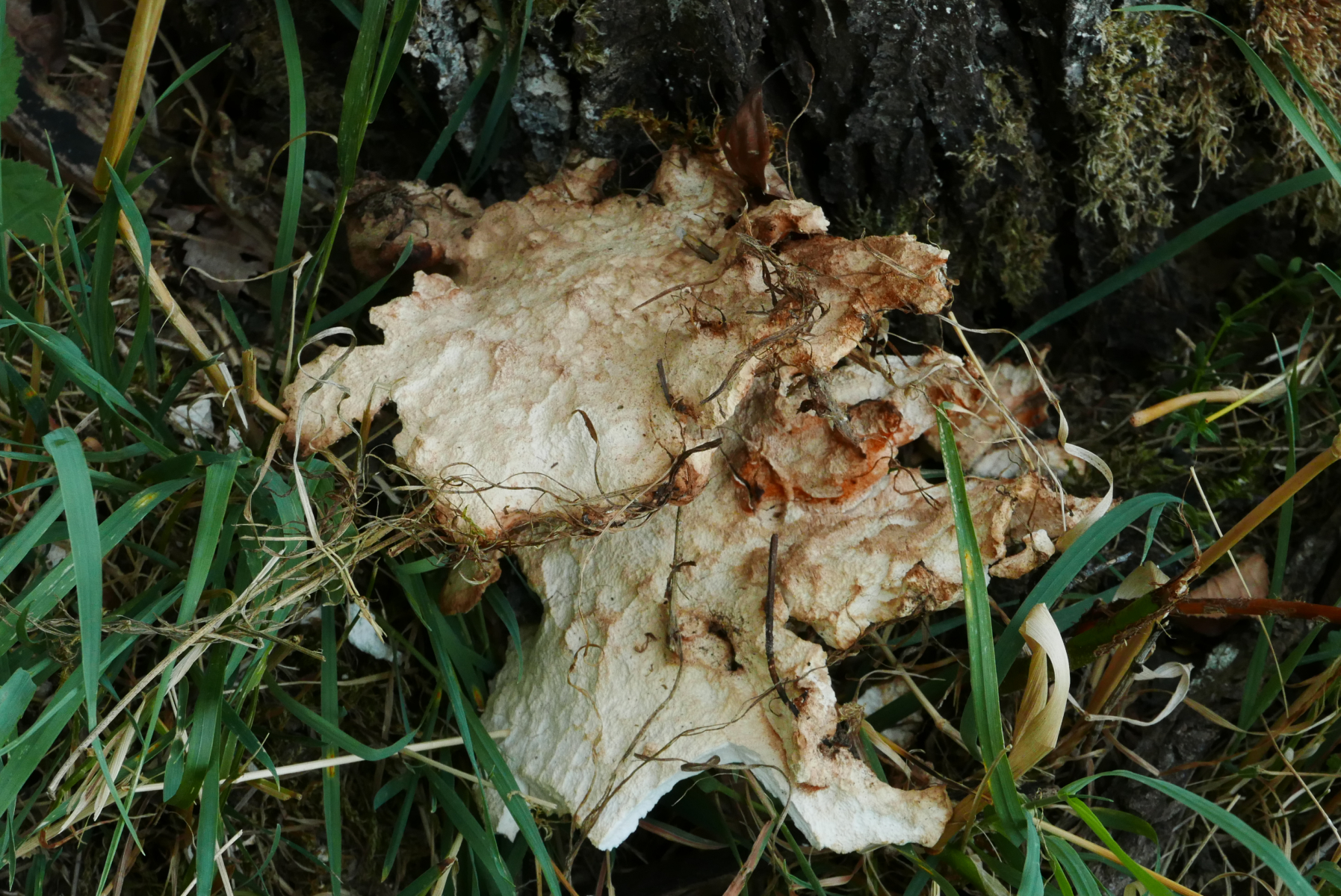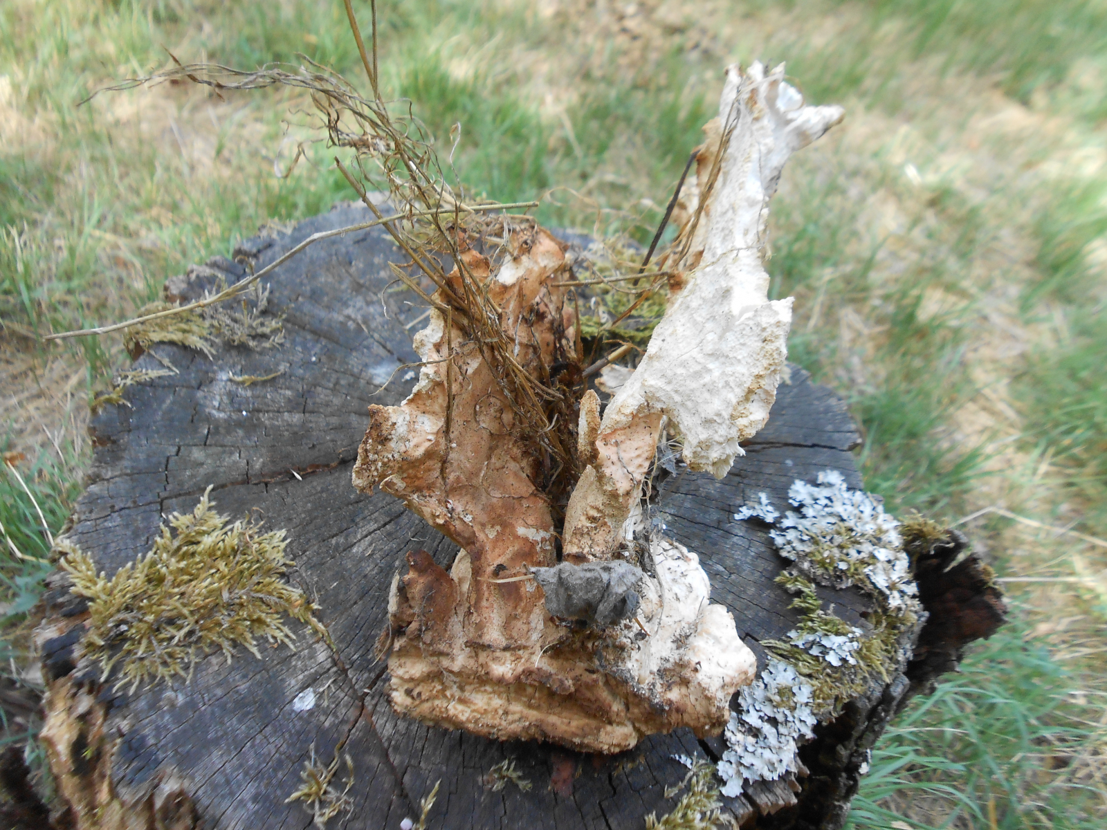14. An einem Apfel-Baumstumpf fanden wir dann noch diesen uralten Pilz - ich vermute einen Schwefelporling, habe schon öfter alte Exemplare gefunden