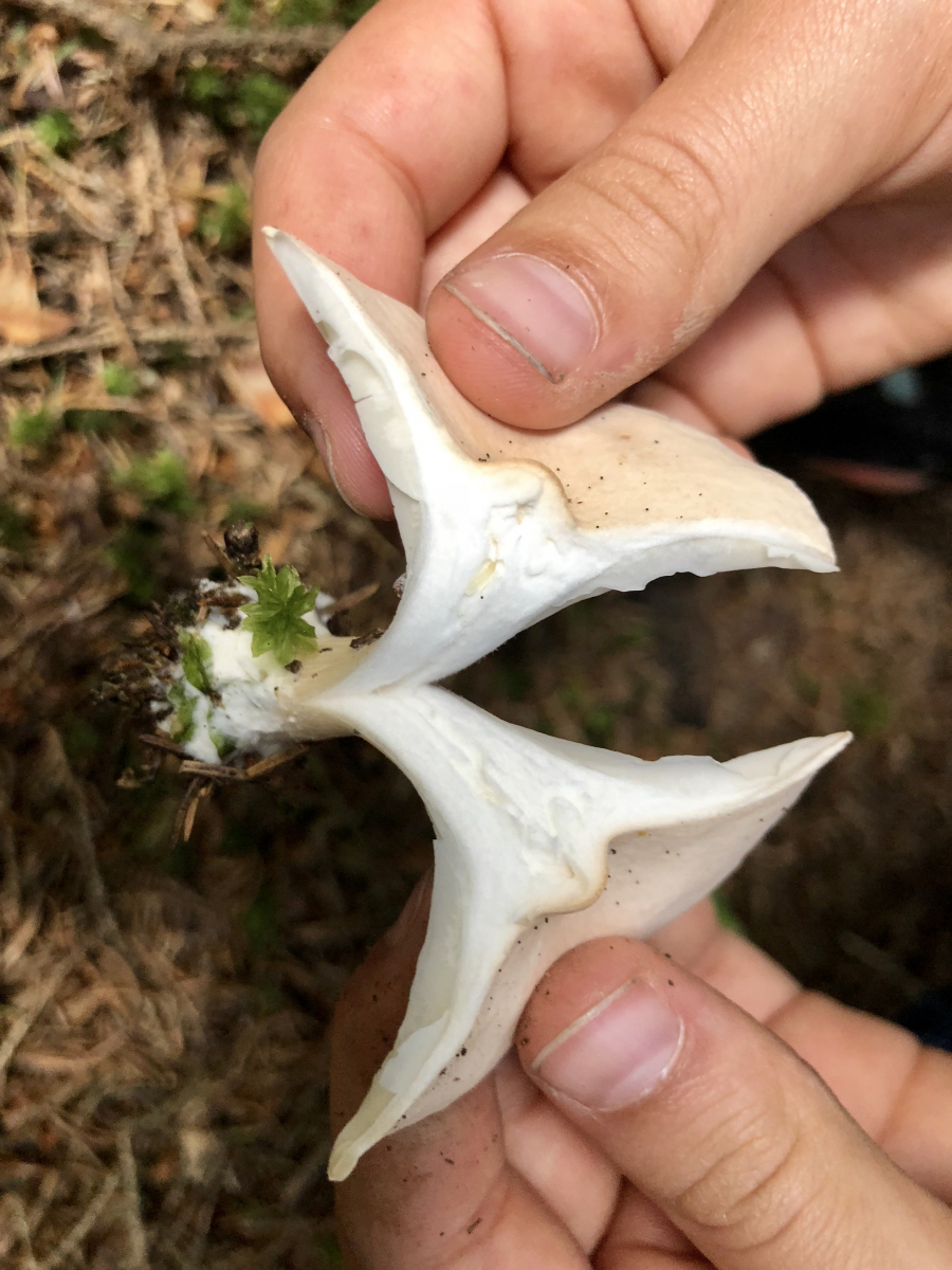 Wegen der knolligen Verdickung der Stielbasis war ich im ersten Moment beim Keulenfußtrichterling;