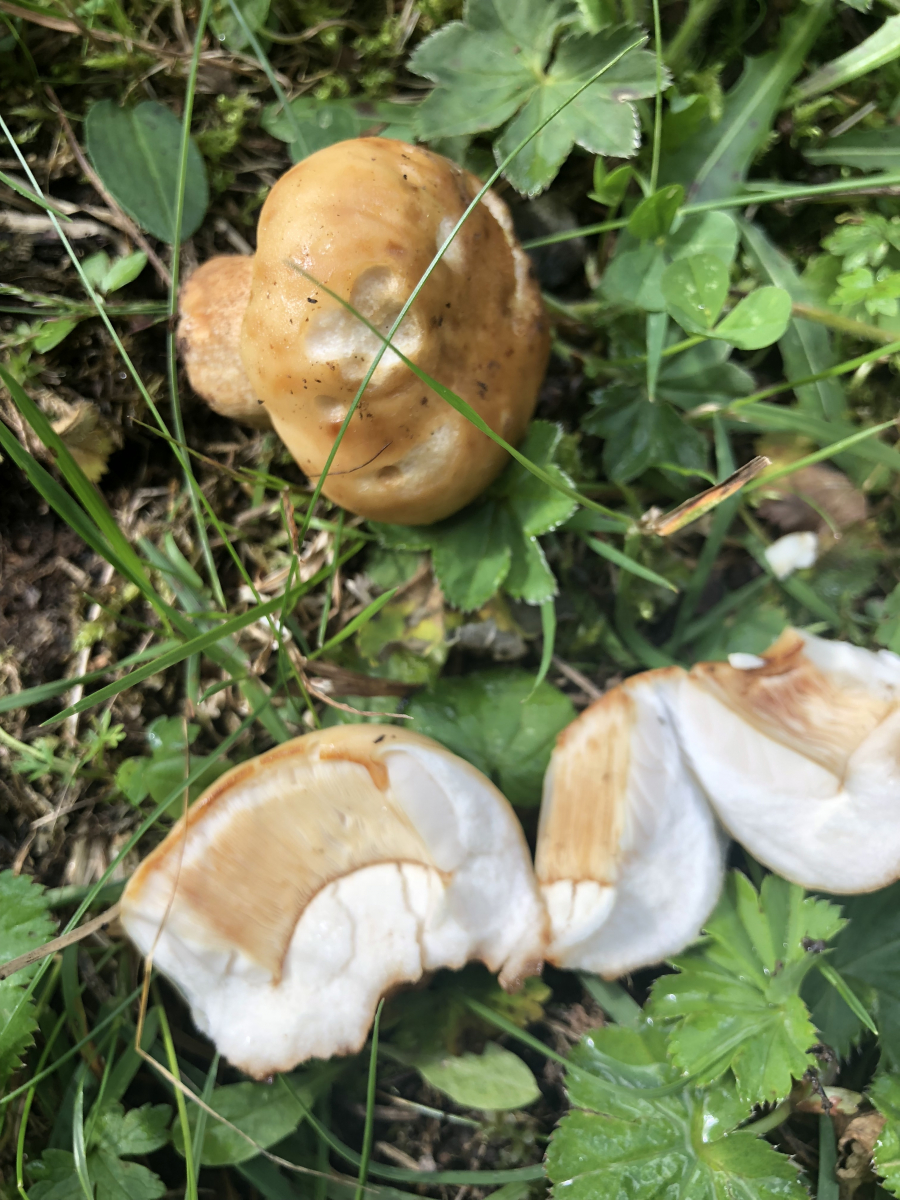 Also mit dem Habitus, Farbverläufen, Marzipangeruch und nahezu obszön deutlich dicht bepunkteten Lamellenschneiden auch bei jungen Pilzen - ich kapiere den Unterschied nicht zwischen >Russula illota< und diesen Pilzen hier.