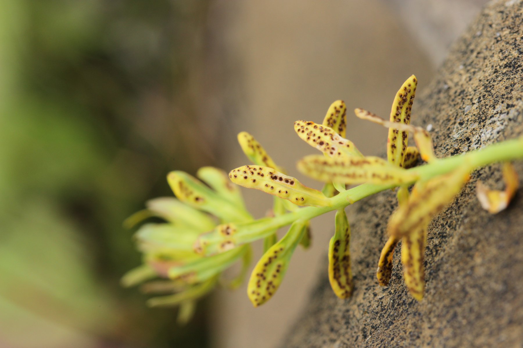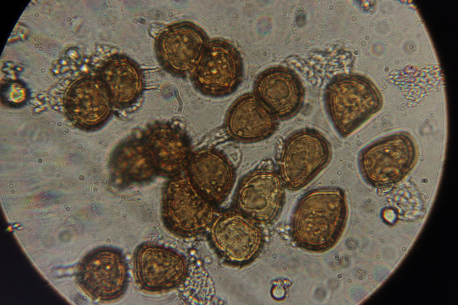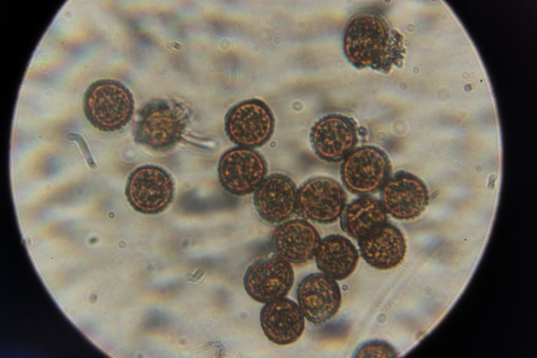 4. Ein Rostpilz auf Euphorbia sp. Eine Bestimmung ist mir hier nicht gelungen, aber schöne Sporen hat der Pilz ohne Zweifel