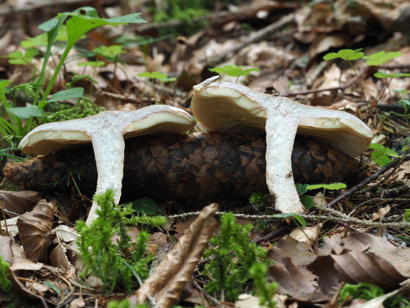 der hat mich ja ganz schön zum Narren gehalten, vor Ort dachte ich könnte ein Weichritterling sein, jetzt auf den Fotos entdecke ich zwei kleine Milchtröpfchen an den Lamellen und beim vergrößern des Schnittbildes noch mehrere Tröpfchen.