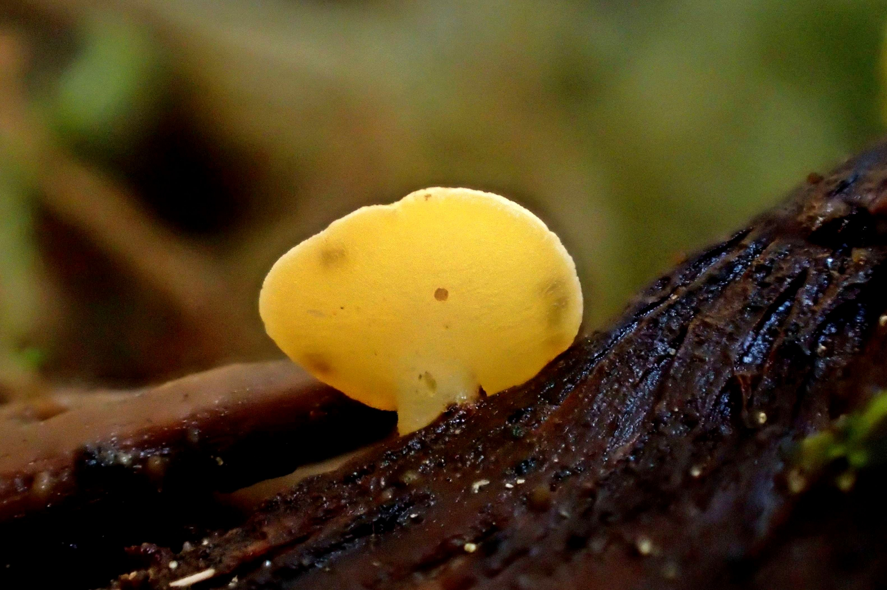 Ingo fand an einem durchfeuchtetem Holzstück in einem Bach diese leuchtend gelben Becherlinge.