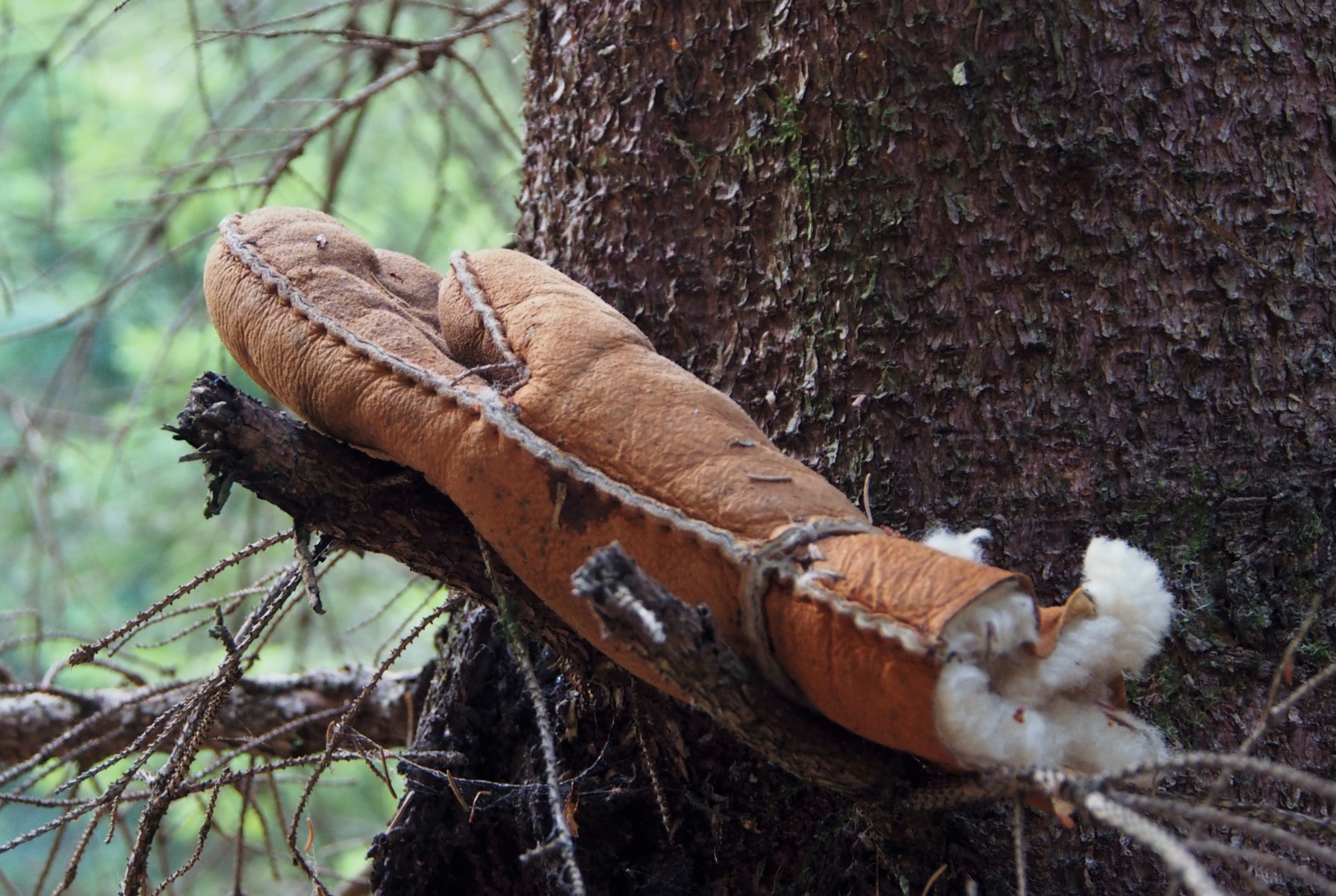 27. + 28. Flacher Lackporling – mit Gallenwespenbefall, meinte Craterelle jemand, war wohl doch nicht Craterelle. Kann das aber sein, dass der Pilz dort neues Fruchtfleisch bildet?