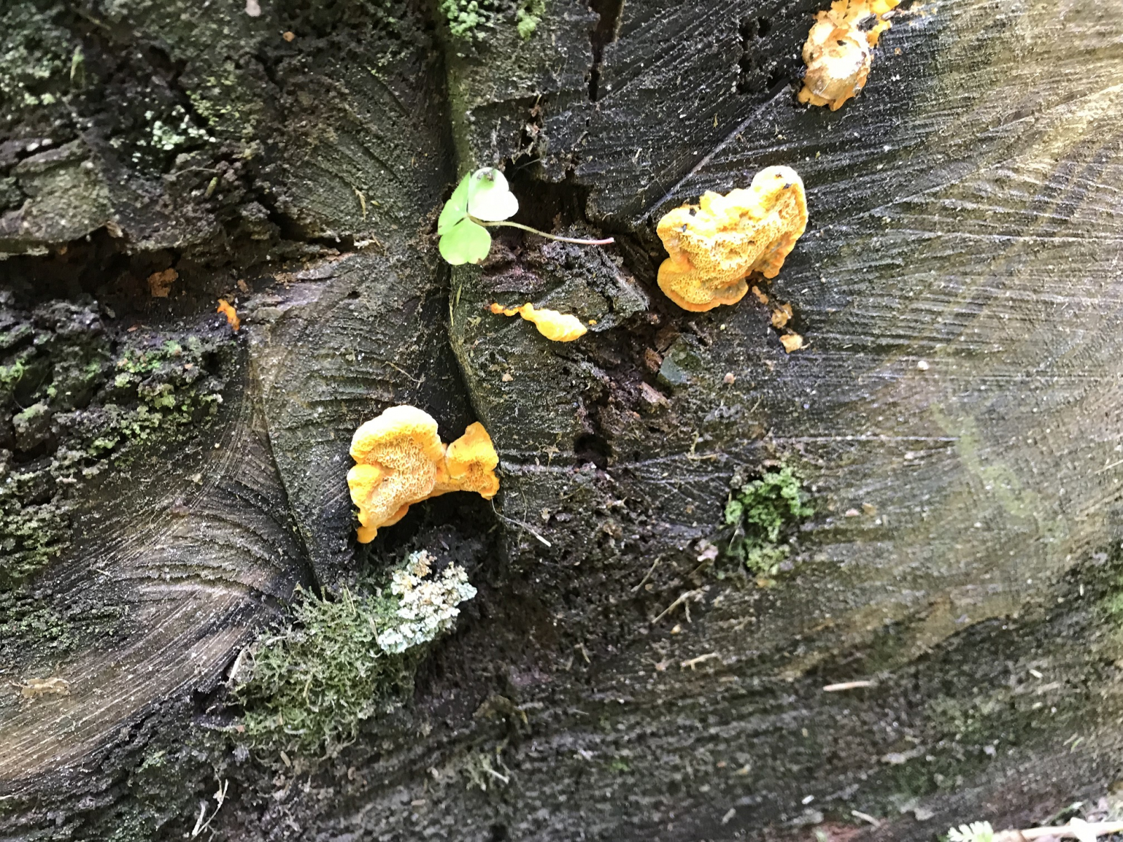 Hübscher Pilz. Entweder Pycnoporellus fulgens (Leuchtender Weichporling), oder Hapalopilus croceus (auf deutsch - ähm ?).