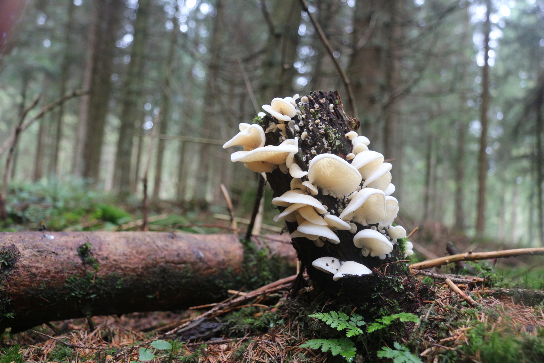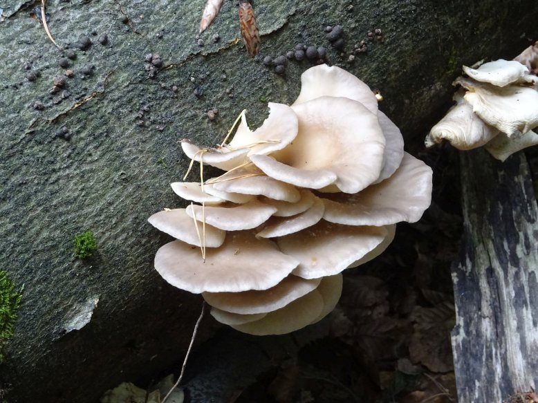 Die letzten zwei Monate hatte ich es schon fast aufgegeben Pilze bei uns in der Pfalz zu suchen. Heute bin ich durch den Wald gelaufen, ohne auch nur einmal den Weg zu verlassen, weil ich bei den Temperaturen und den Staub trockenen Böden gar nichts erwartet hatte. In einem sehr schattigen und etwas tiefer gelegenen Bereichs des Waldes, den ich zuvor noch nie besucht hatte, entdeckte ich dann eine kleine Kolonie Austernpilze? auf einem Buchenstamm.