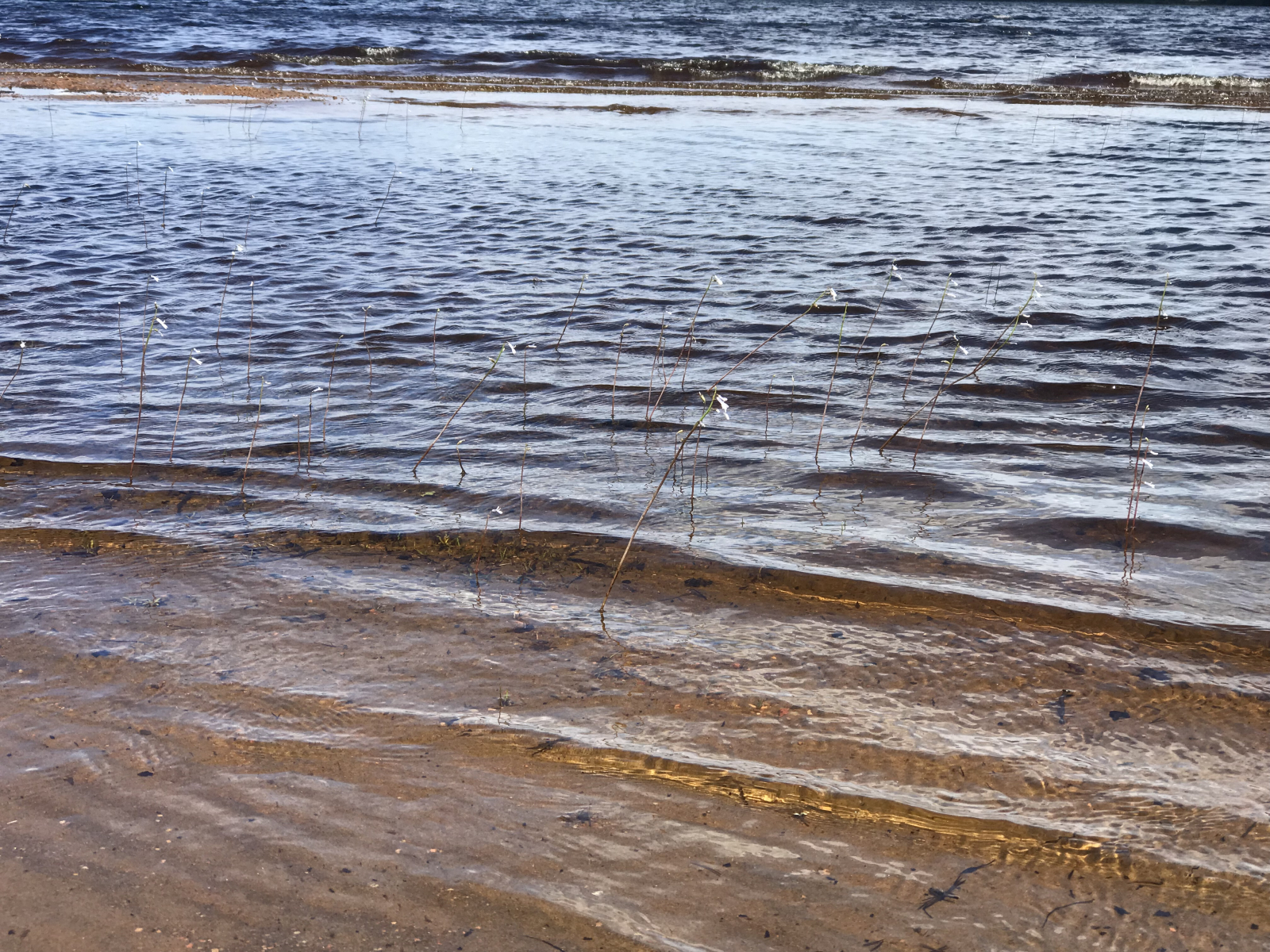 Beim Angeln und Baden vielen uns die ganzen „Stängel“ auf, die aus dem Wasser schauten. Bei näherer Betrachtung fielen uns die sehr schönen weißen und länglichen Blüten auf ...