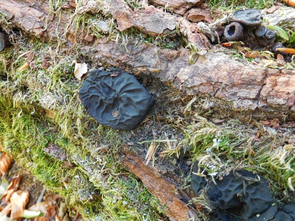 An einem liegenden Ast von dem Baum dann winzige schwarze und harte Becherchen (3 - 4 mm). Die sehen wie Schmutzbecherlinge aus. Ich habe zwei gleich große Fruchtkörper mitgenommen. Einen habe ich in`s Wasser gelegt. Das "Becherchen" wurde zum Becher!