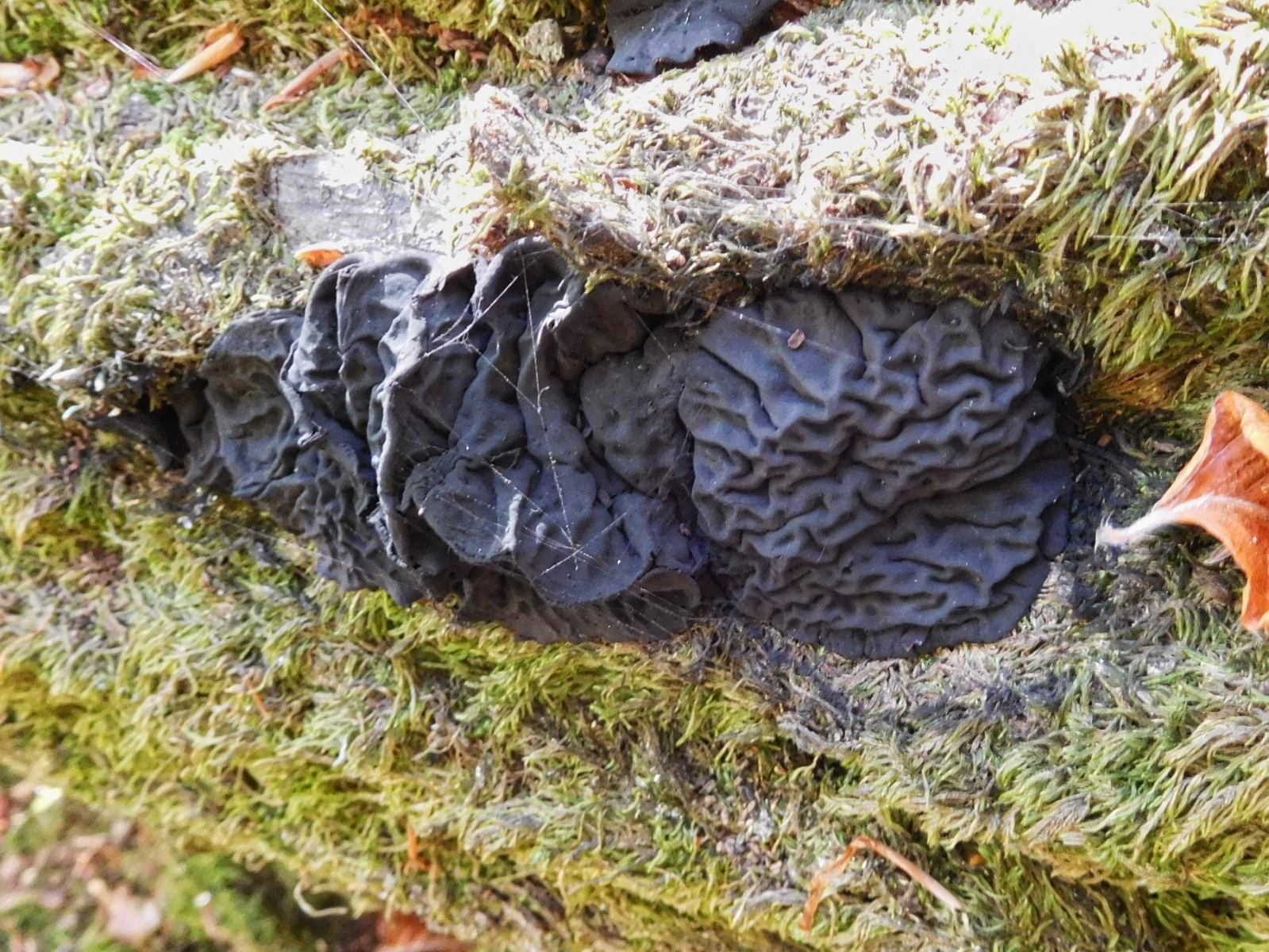 • An einem liegenden Ast von dem Baum dann winzige schwarze und harte Becherchen (3 - 4 mm). Die sehen wie Schmutzbecherlinge aus.