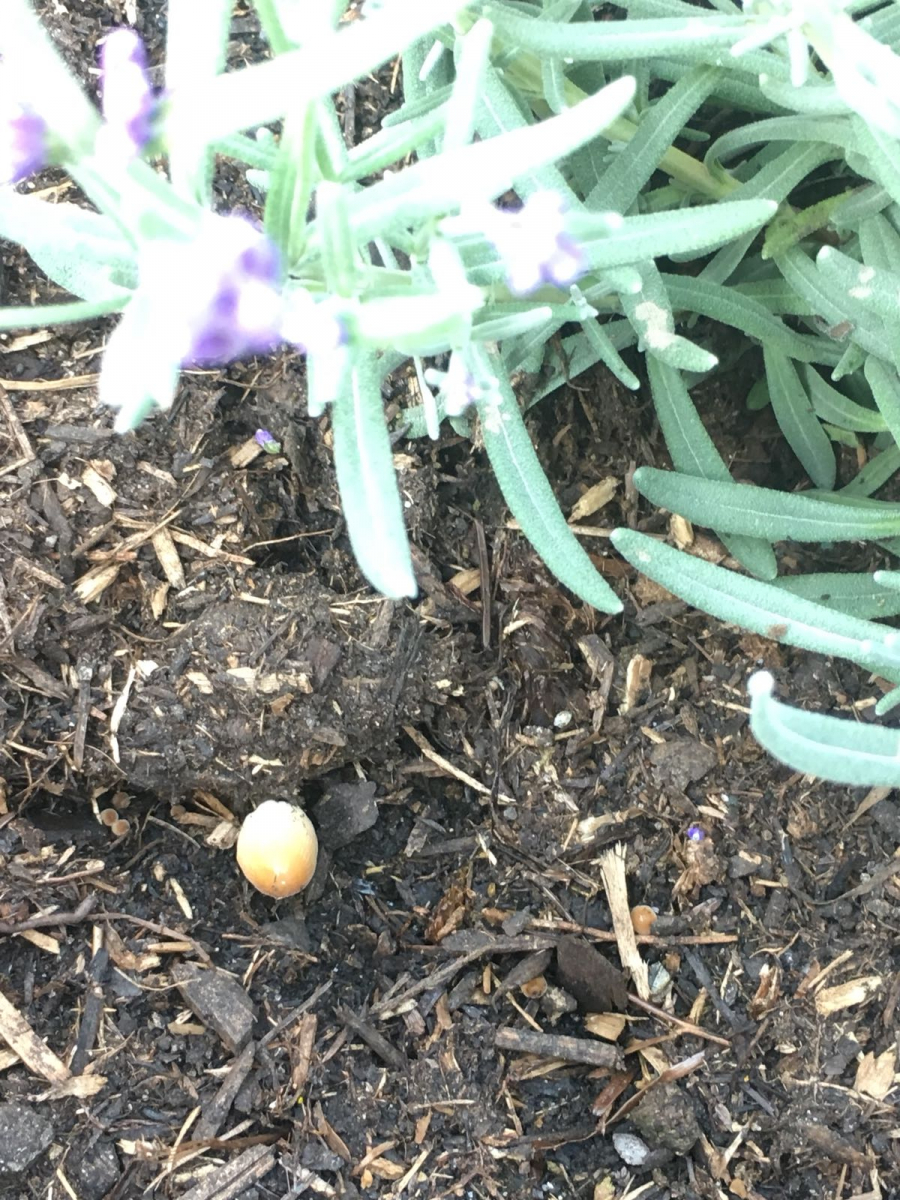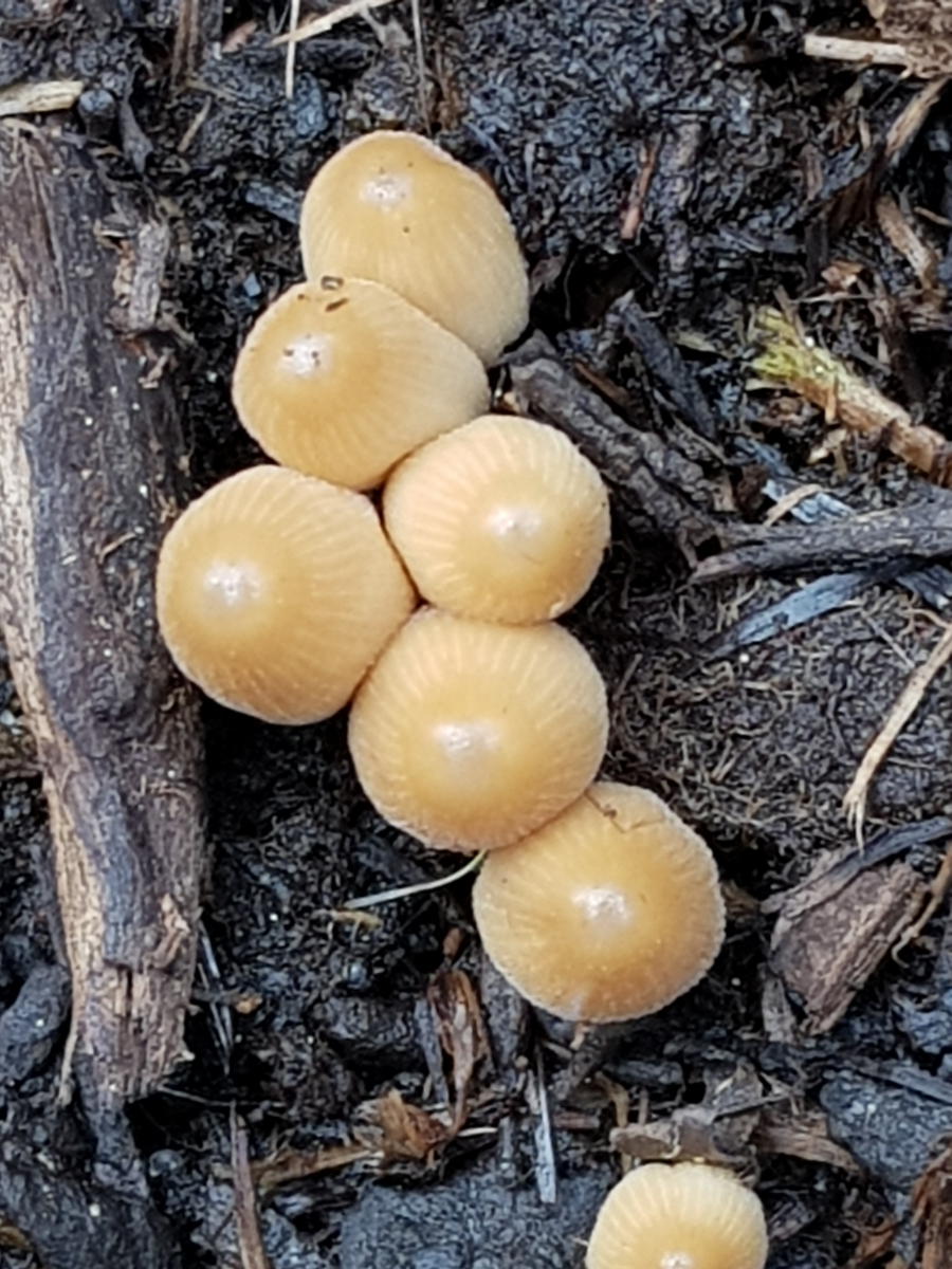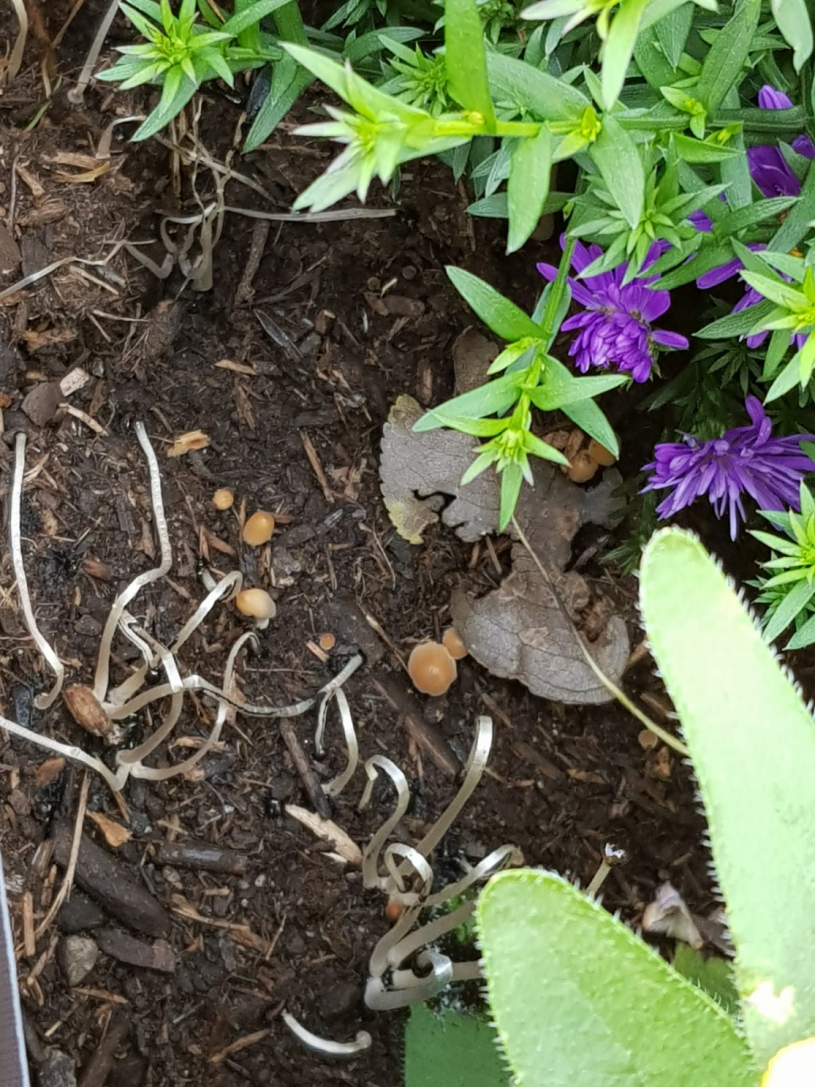 Bei meiner heutigen Besichtigung habe ich neben vielen Bienen und Hummeln auch festgestellt, dass sich auf dem Erdboden kleine bräunliche/gelbliche Pilze gebildet haben.