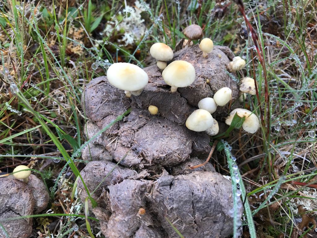 Der Dungpilz ist ganz sicher eine Protostropharia. Ob Protostropharia semiglobata kann man am Foto nicht erkennen, wobei sie mir dafür zu kurzstielig aussehen. Rein Makroskopisch sieht es sehr nach Protostropharia arctica aus - die hat typischerweise diese kurzen Stiele. Puh, da hätte ich gerne denb Beleg. Diese Art ist bislang nur aus Sibirien und Island bekannt - und zwar auch Hasendung (was wenig sagt, denn das heißt nicht, dass sie nicht auch auf anderem Dung vorkommen kann).