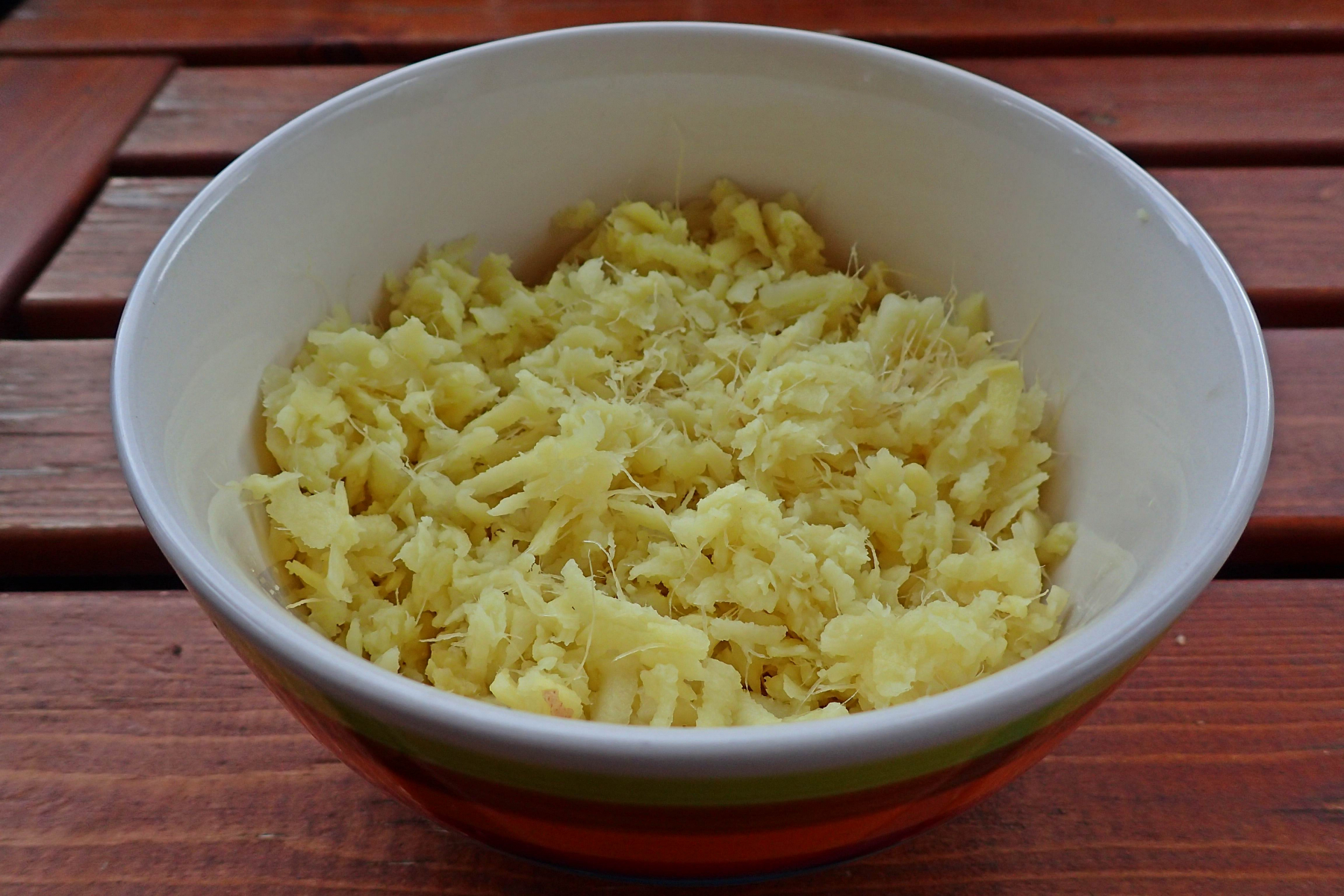 Also auf 100 g Ingwer 100 g Zucker und 100 ml Wasser. Mischverhältnis 1 : 1 : 1.