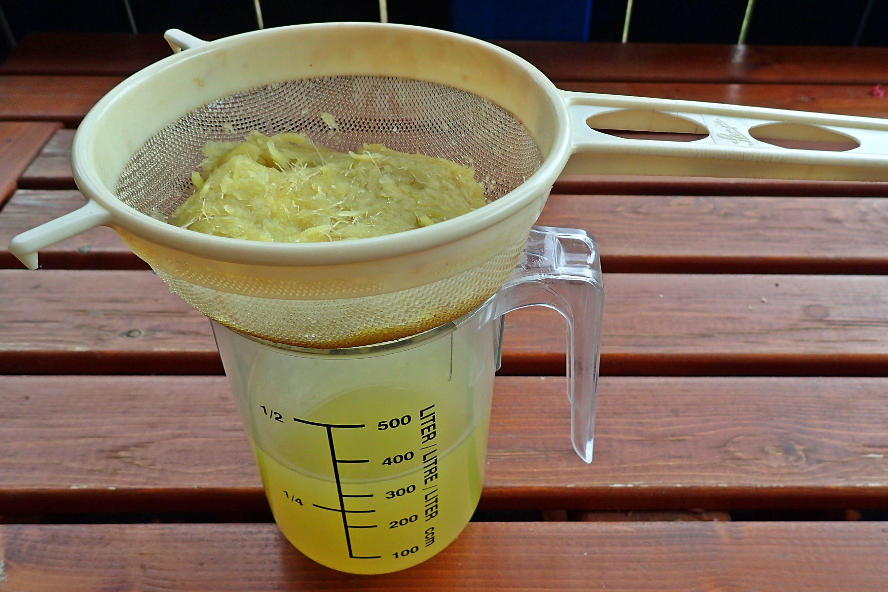 Nach dem Abkühlen die Masse durch ein Sieb passieren und gut ausdrücken.