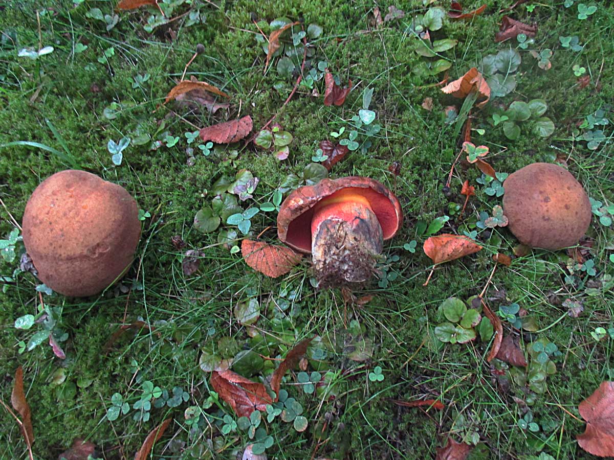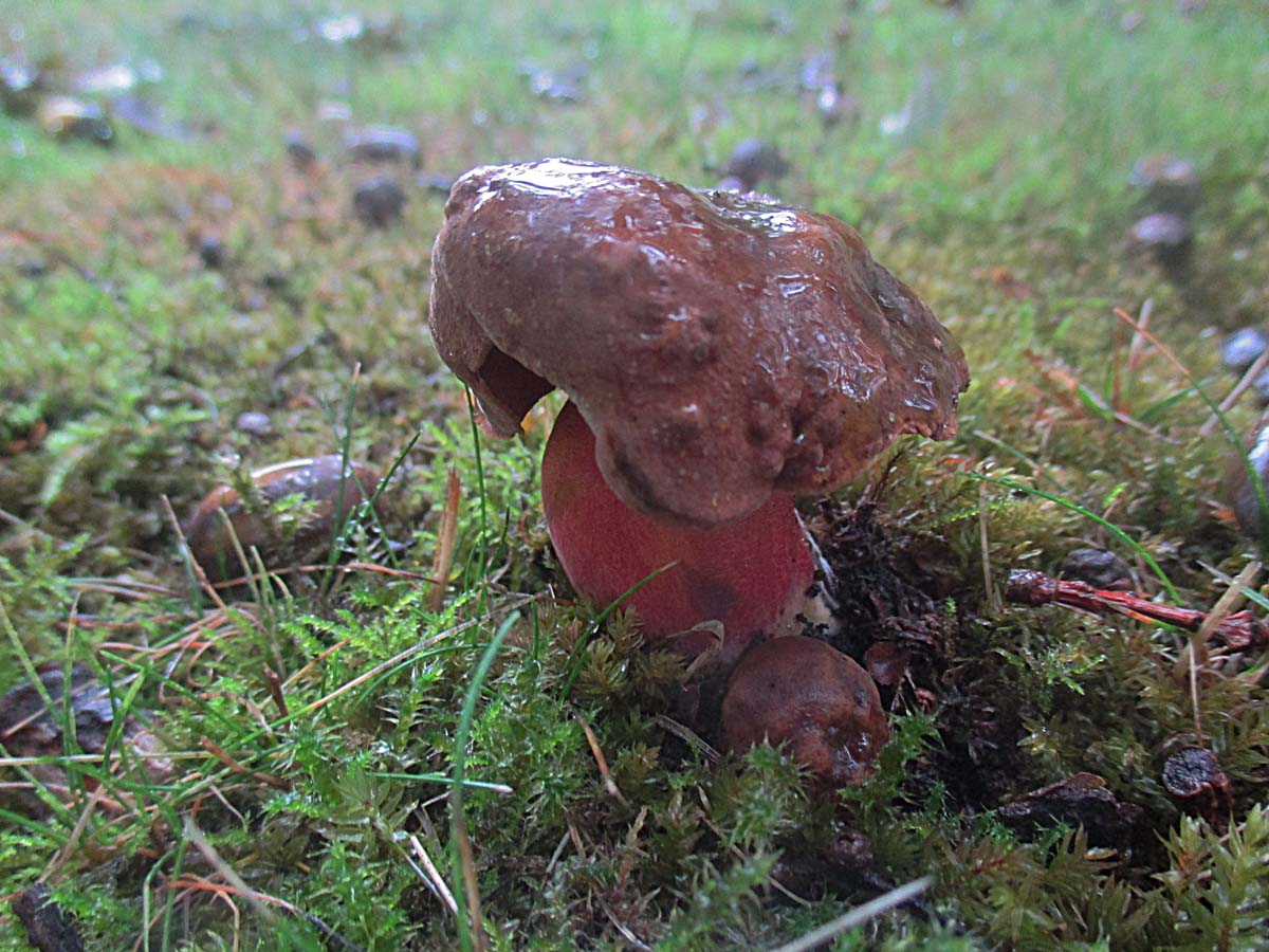 tolle Bilderstrecke! Die rote Netzhexe ist Boletus luridus var. rubriceps (Maire) Dermek. Der wurde noch nicht zu Suillellus kombiniert, weshalb ich es bei dem alten Namen hier belasse. Ich habe diese Varietät schon sehr lange nicht mehr gesehen. Ich kenne sie aus Polen, in Deutschland habe ich sie noch nie gefunden.