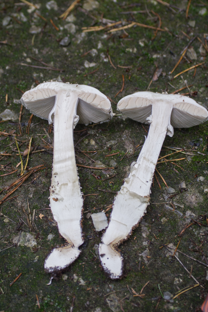 Dazu dann noch der lange, wurzelnde Stiel. Eben bei der Recherche kam ich zum Spitzkegeligen Wulstling. Wäre das 'ne Option? Oder irgendein Albino?