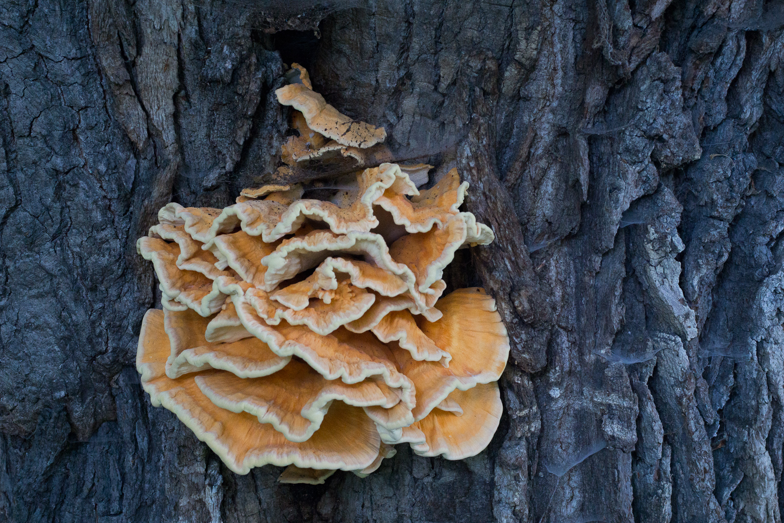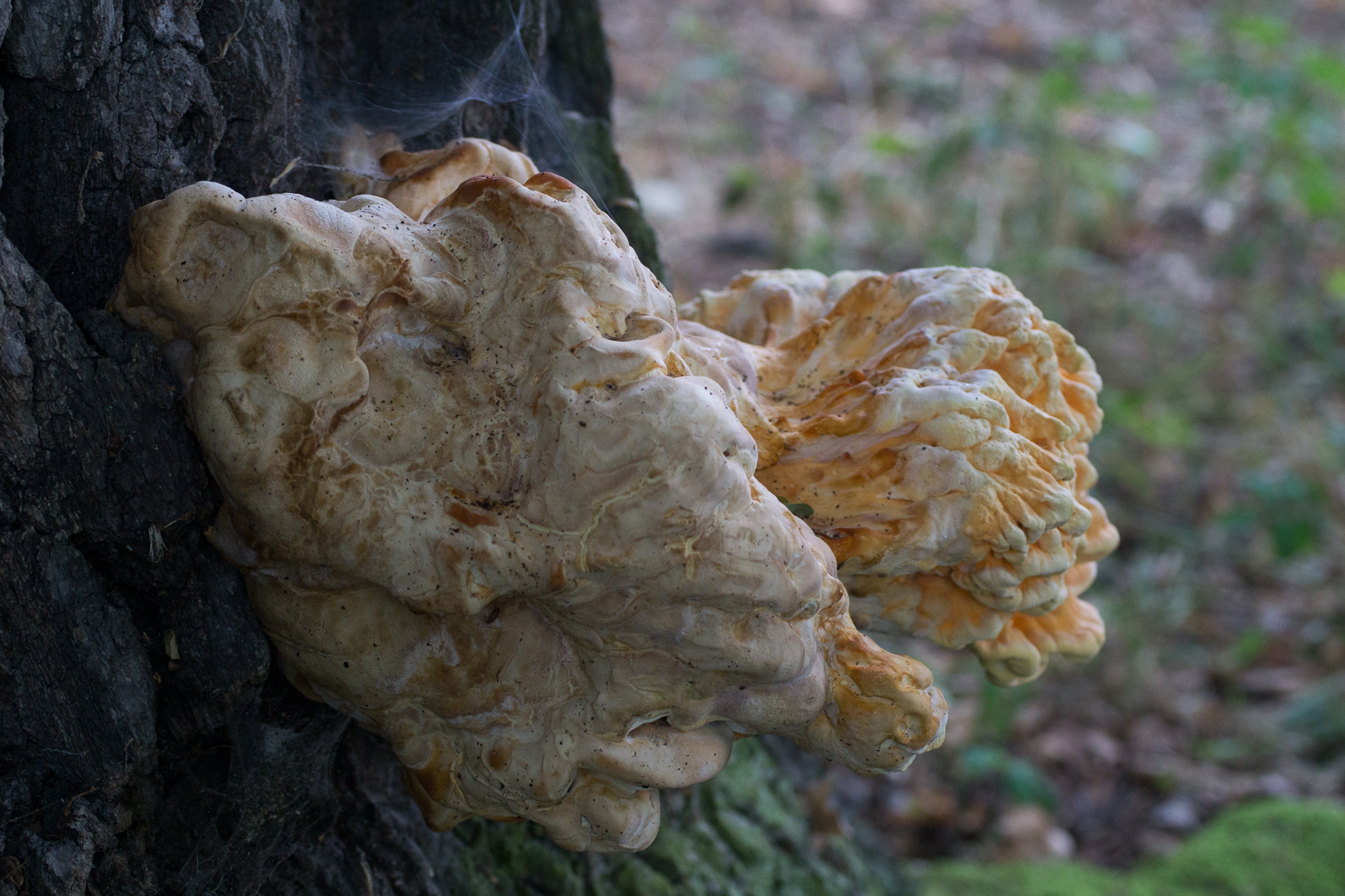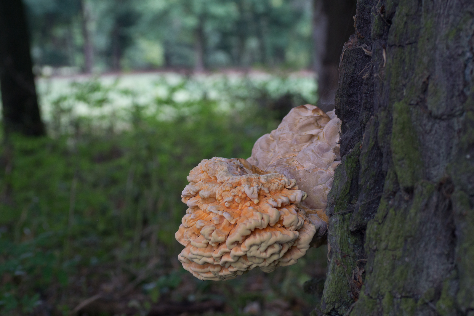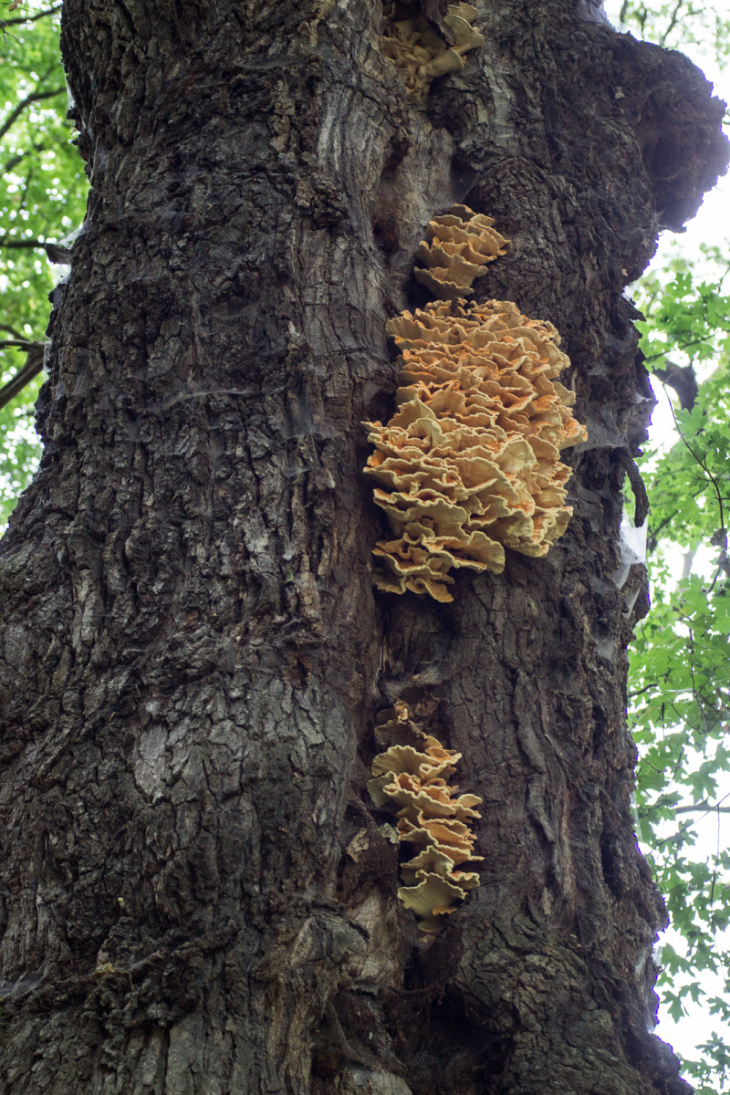 • Bingo, beli. Der Schwefelporling war's, der die alte Eiche angeknabbert hat. Vor ca. 2 Wochen: