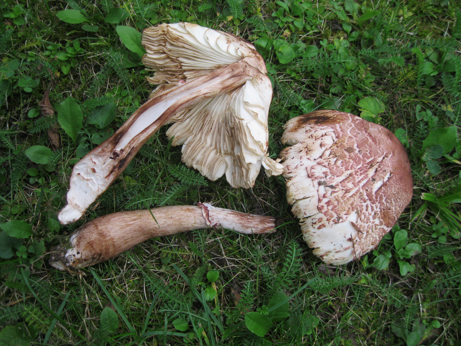 Die Ringstruktur wäre mal interessant genauer zu sehen, es kann ja auch eine der rötenden Macrolepiota - Arten sein, wenn der Ring nicht so einfach aussehen würde.LG, Pablo.