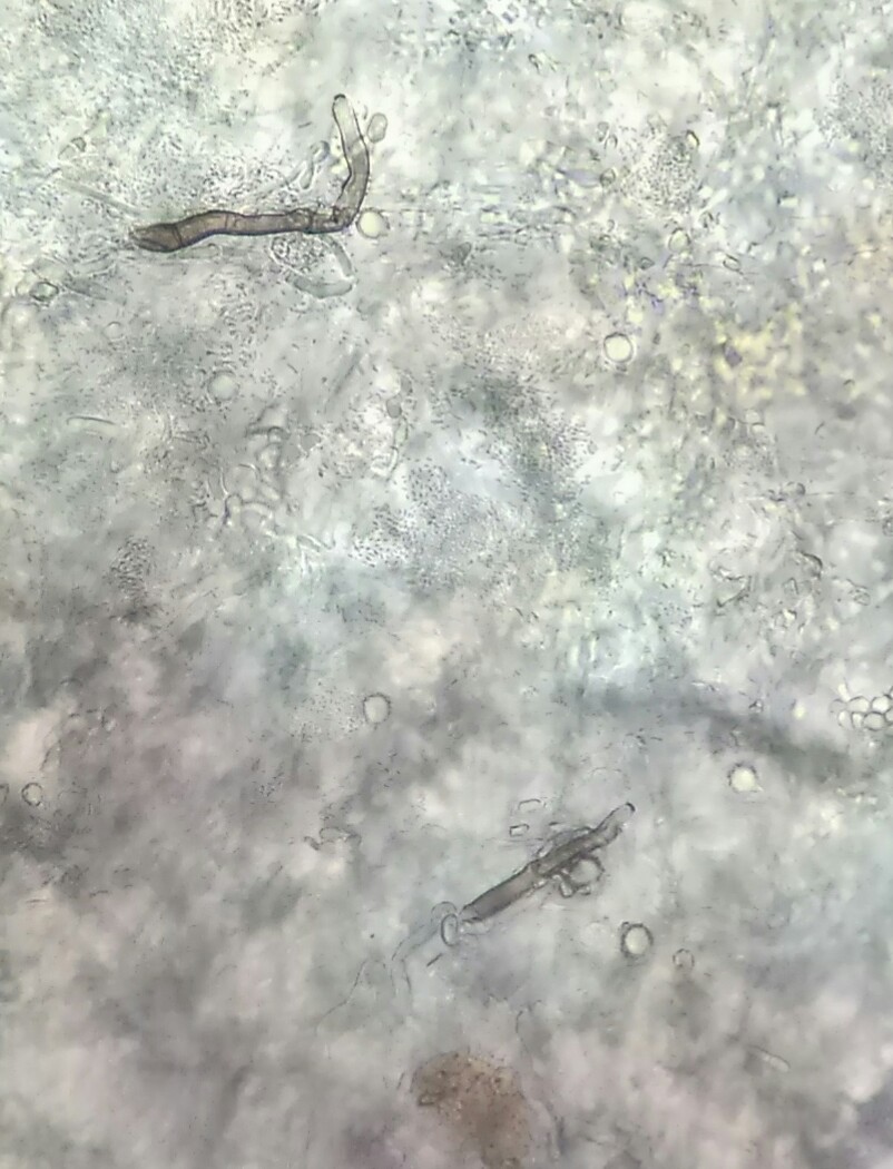 Sehe ich da eingefärbte Dermatozystiden unter dem Mikroskop oder ist das etwas anderes?