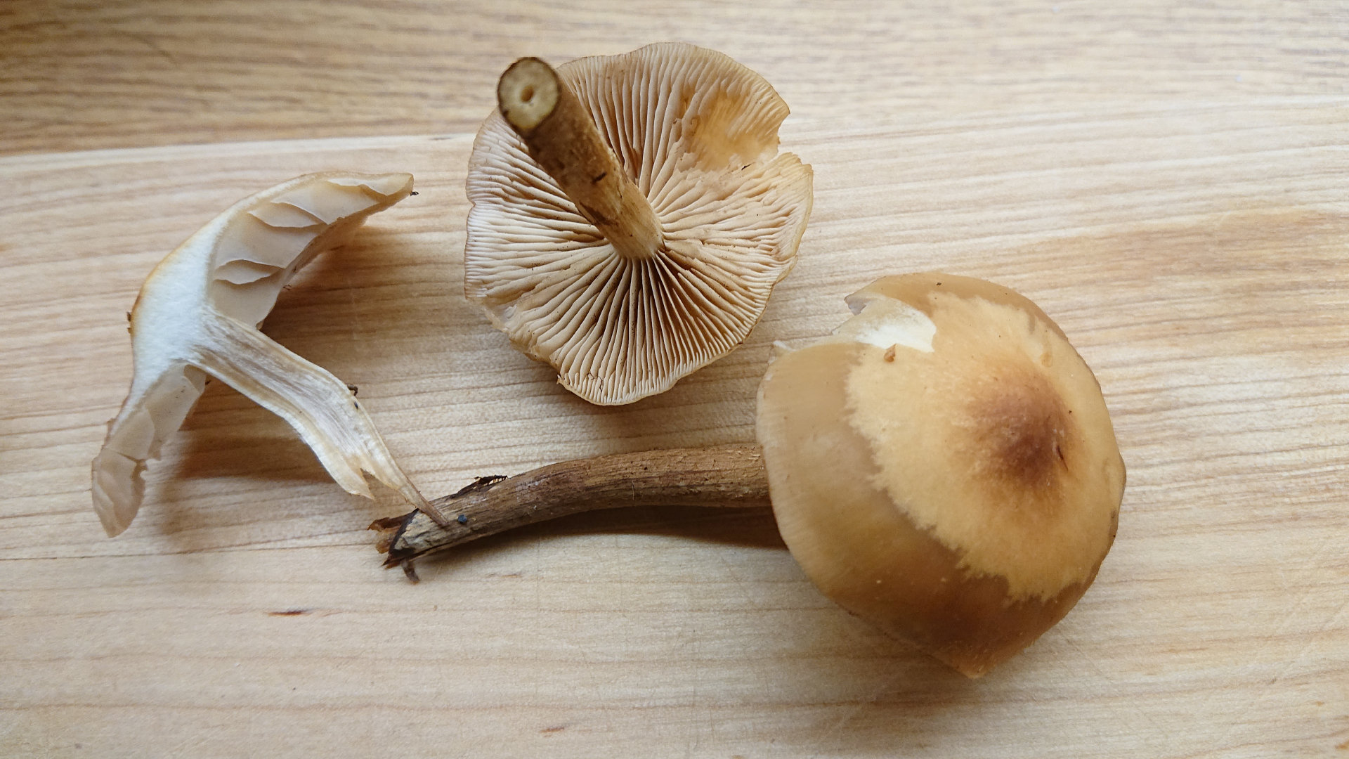Vom Querschnitt durch Stiel und Hut würde ich als Laie und mit Hilfe der Fotos hier im Forum ja auf Stockschwämmchen tippen aber der Stiel/schuppen bereitet mir Kopfzerbrechen