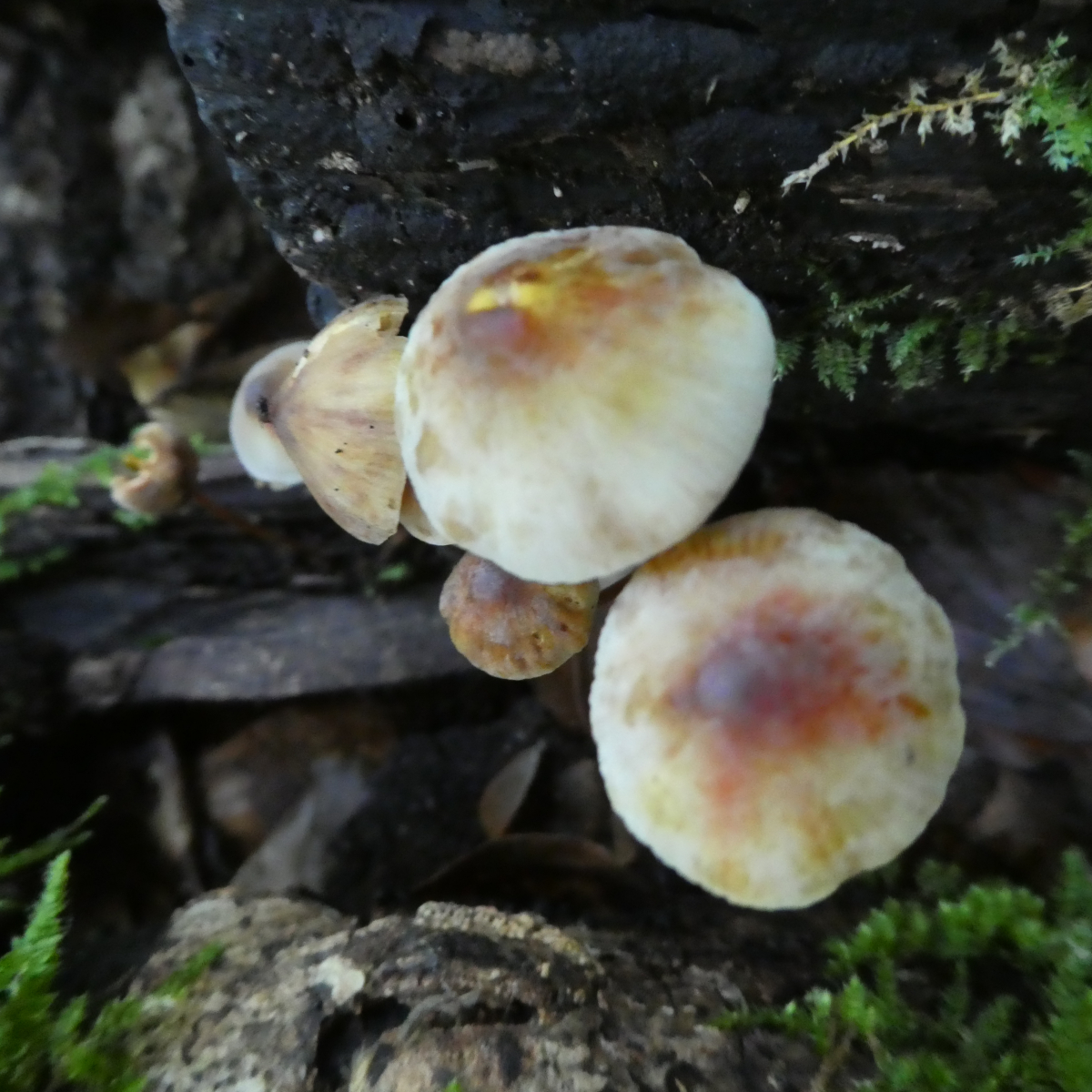 ich finde den Gelborangemilchenden Helmling (Mycena crocata) regelmäßig unter gewaltigen Rotbuchen.