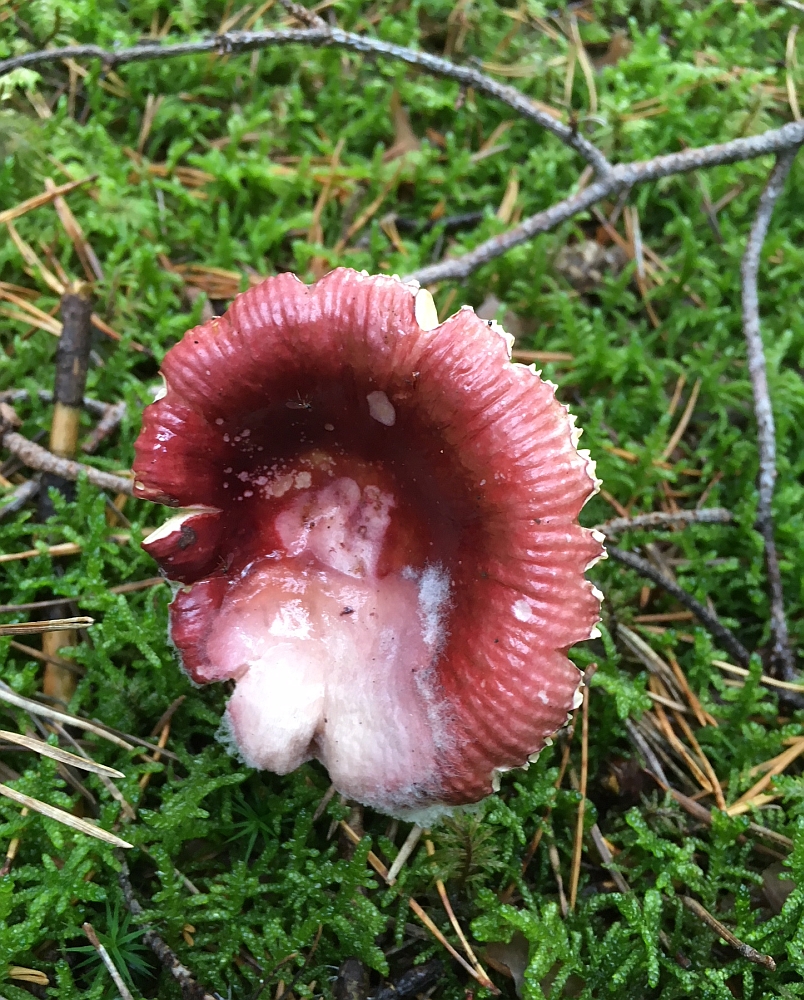 Bei meinen gestrigen Pilzausflug habe ich eine Stelle entdeckt, an der es relativ viele Täublinge gab. Ich tue mich allerdings schwer mit der genauen Bestimmung, da es einige Arten gibt, die sehr ähnlich aussehen. die Hutfarbe ist dunkelbraun, leicht ins Violette gehend.