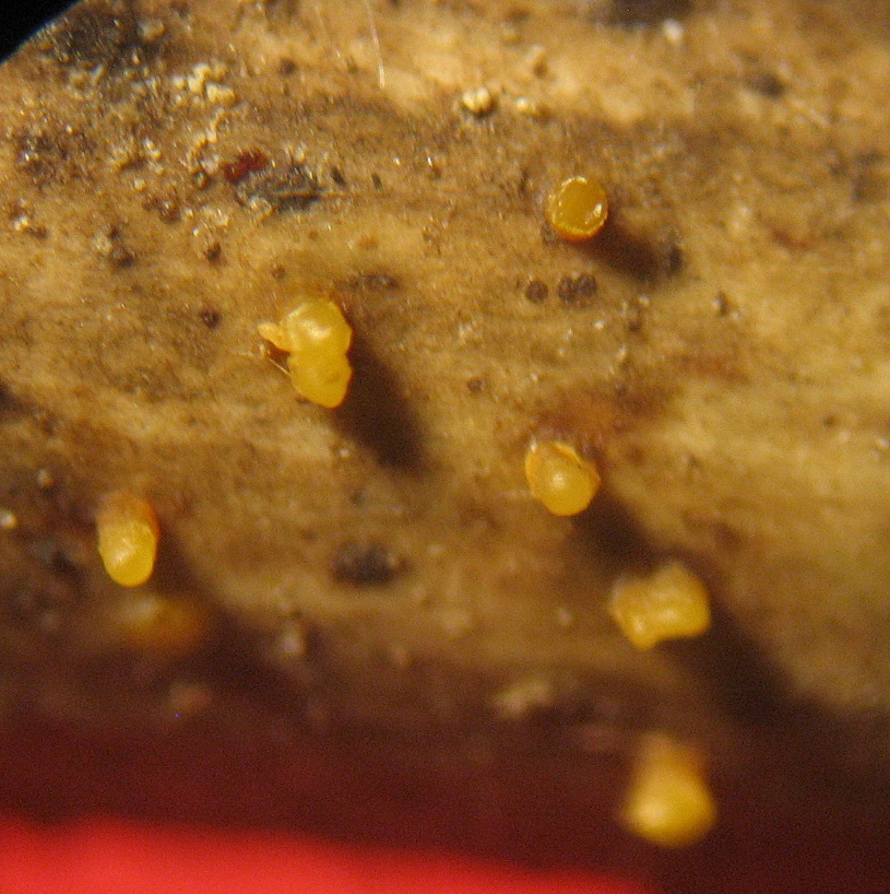 vor kurzem bekam ich 2 Schilfstengel vorgelegt auf dem gelbe "Becherlinge" zu sehen waren.