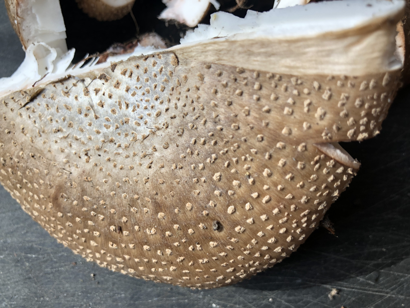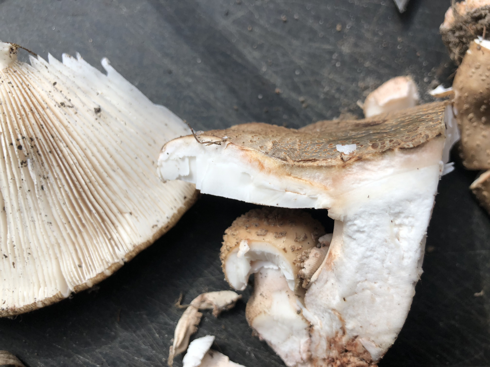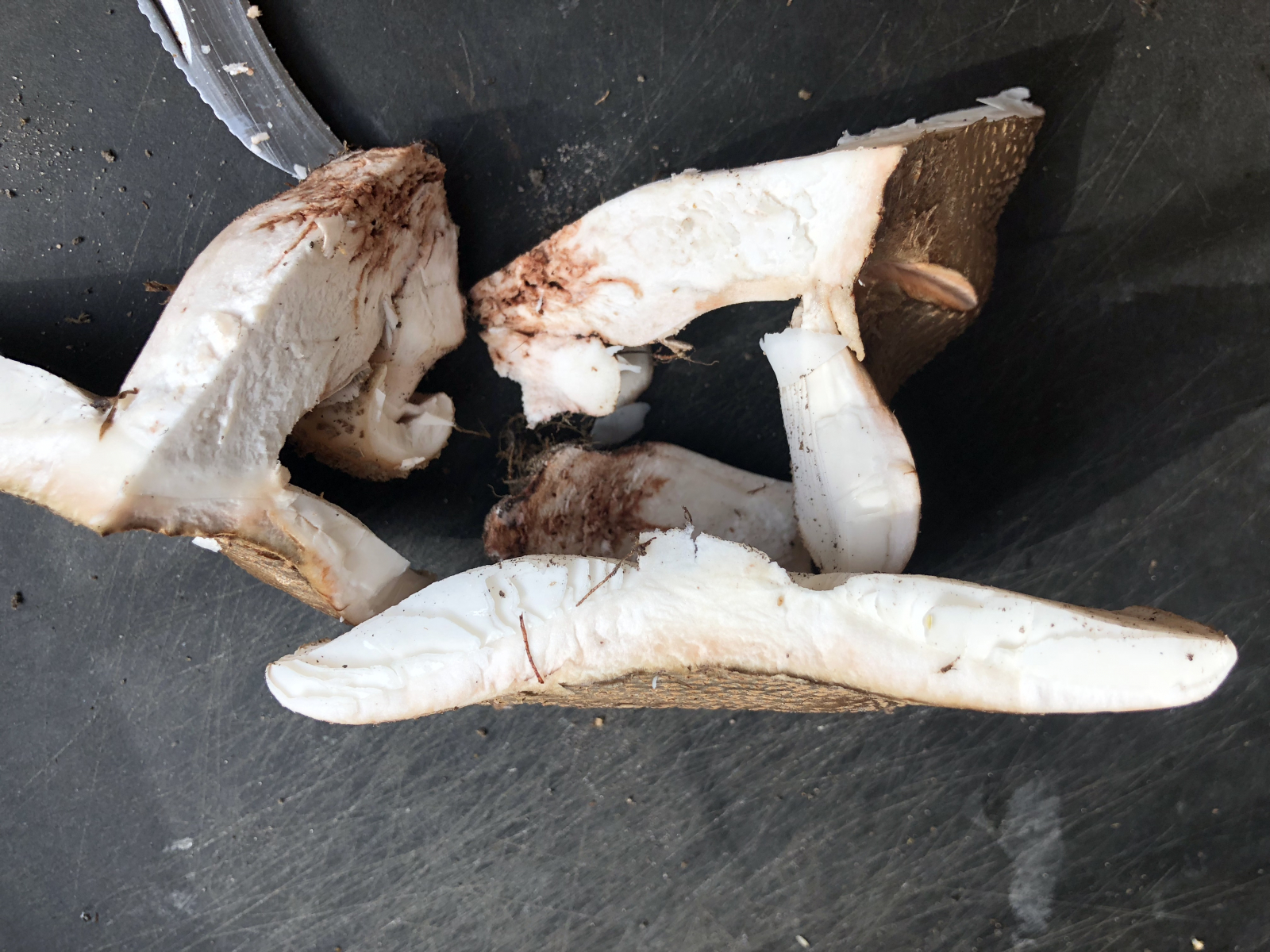 Ist das ein Perlpilz? Ich meine, er rötet an den Schnittstellen.