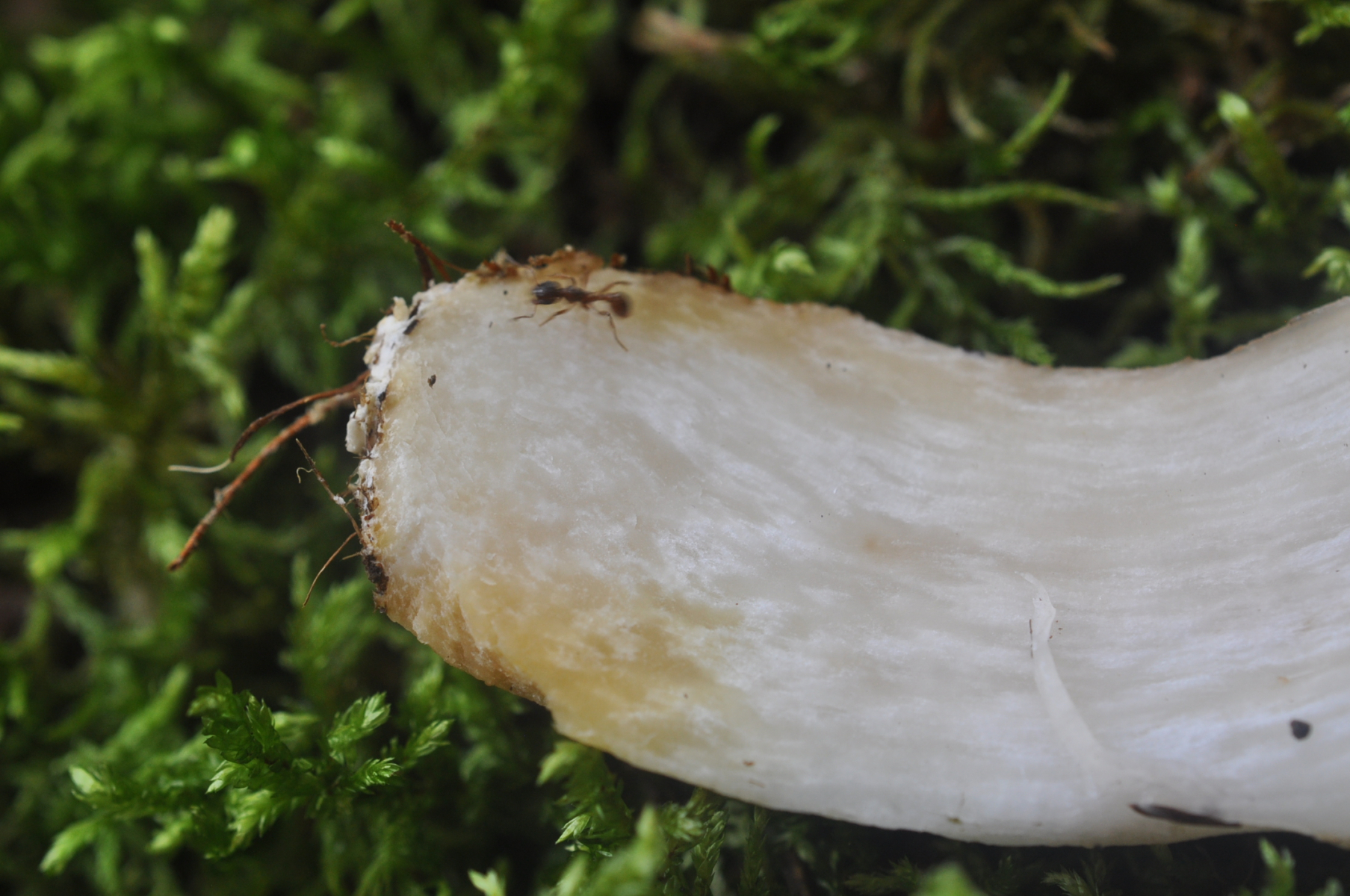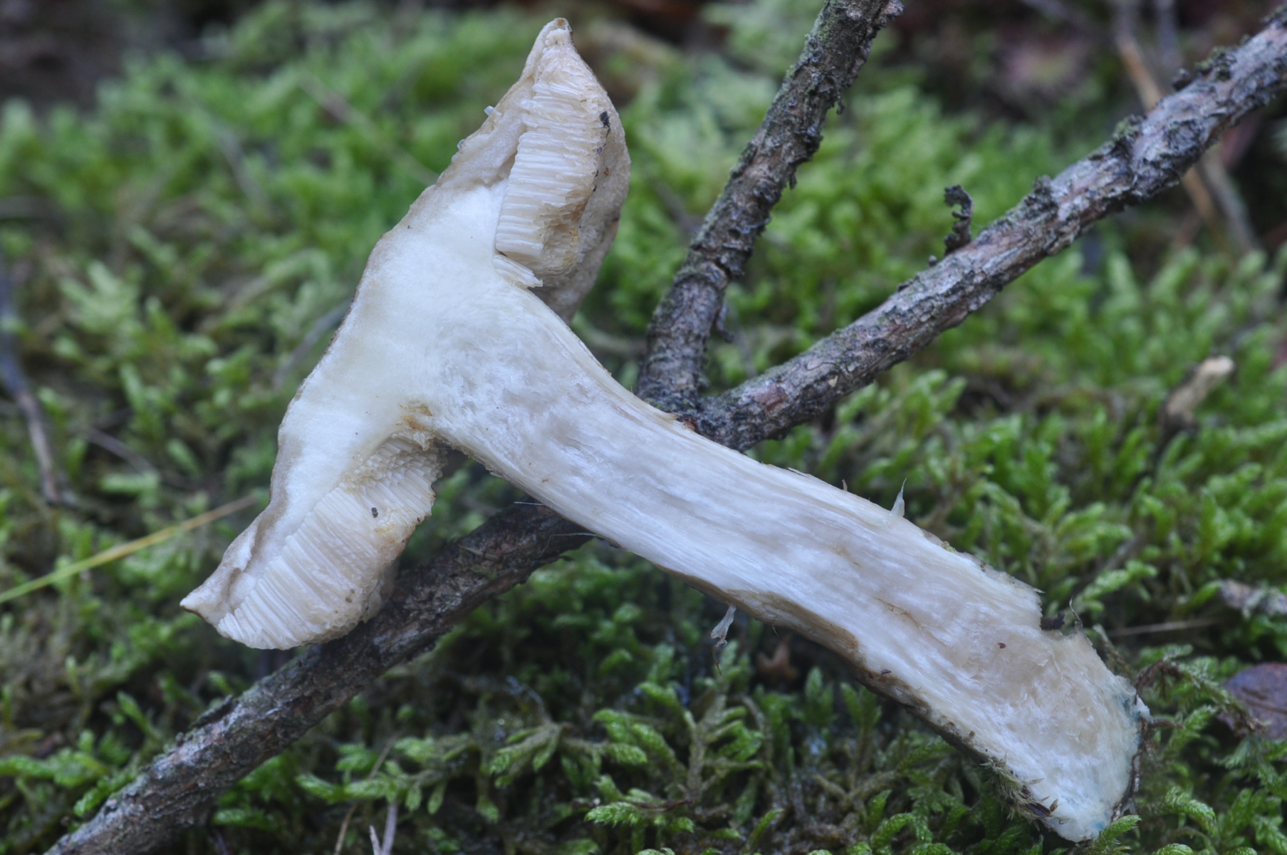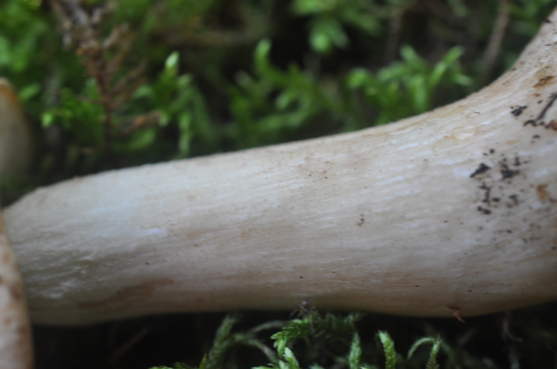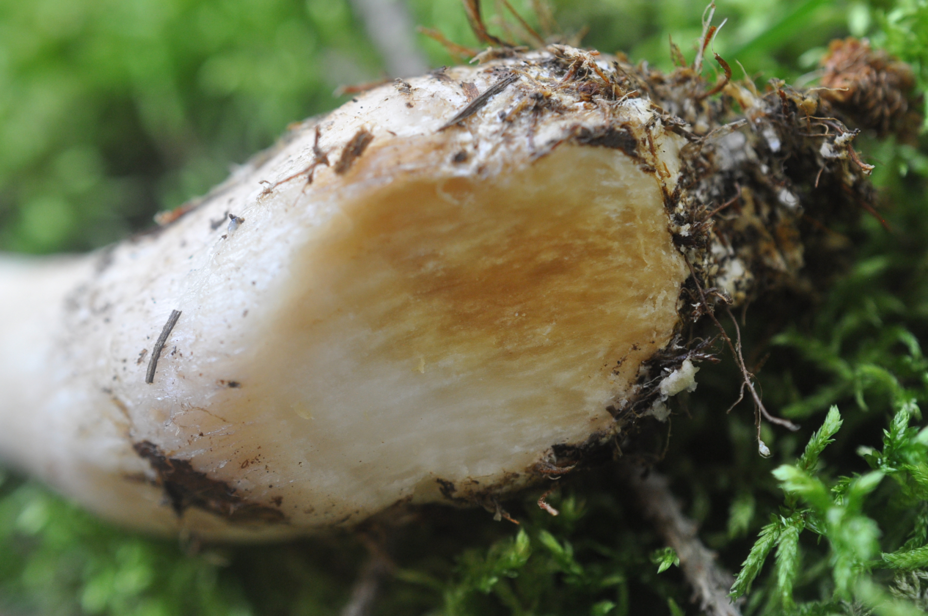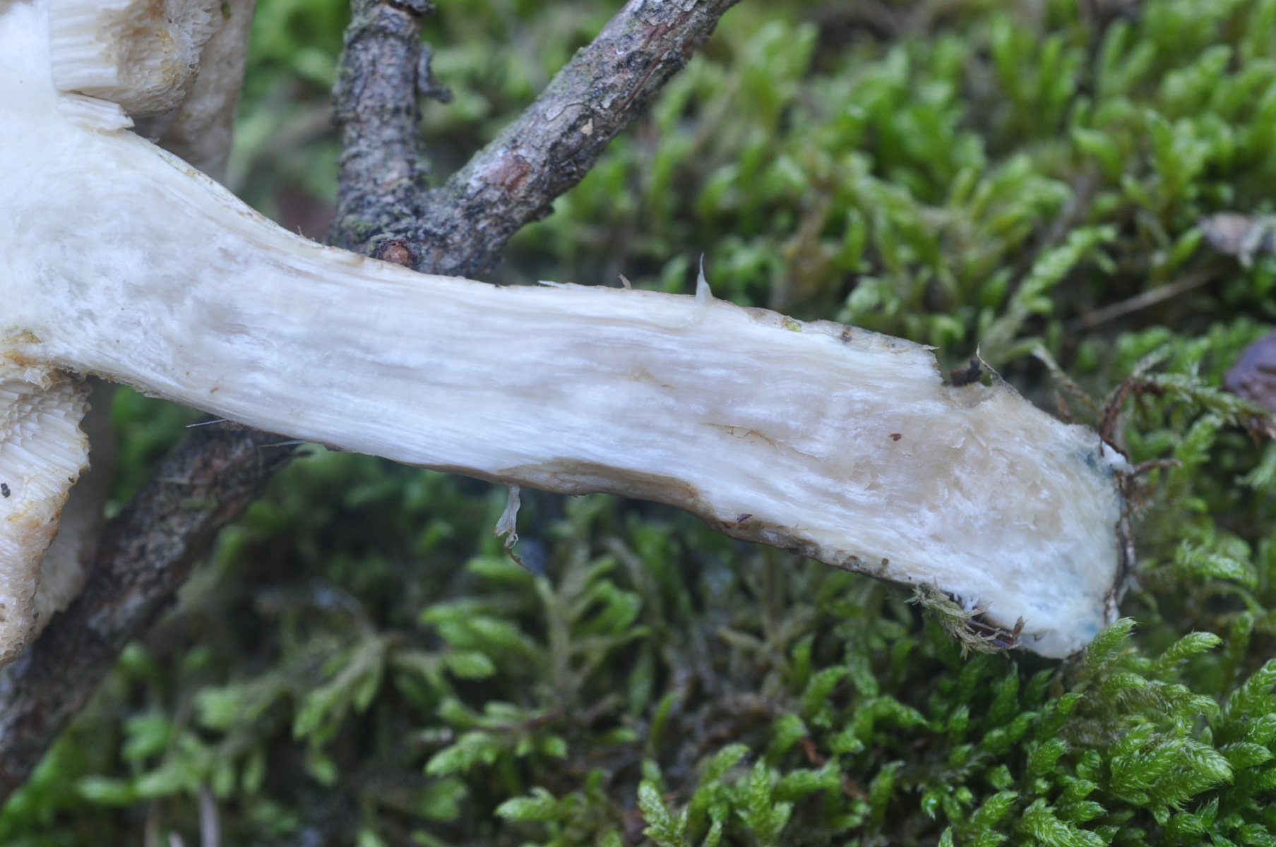 Jedenfalls bleibe ich noch bei dem Konzept von Lannoy & Estadès - Leccinum nucatum fällt raus, weil der wirklich auffällig sparrige Stielschuppen hat. Leccinum brunneogriseolum/cyaneobasileucum hat ja diese unauffällige, teils wollige Stielbekleidung und kann auch mal fast glatt sein. Insofern sehe ich hier einen weißen Leccinum brunneogriseolum, also Leccinum cyaneobasileucum s.str. ;-). Ohne Mikroskopie ist das aber keine belastbare Bestimmung.