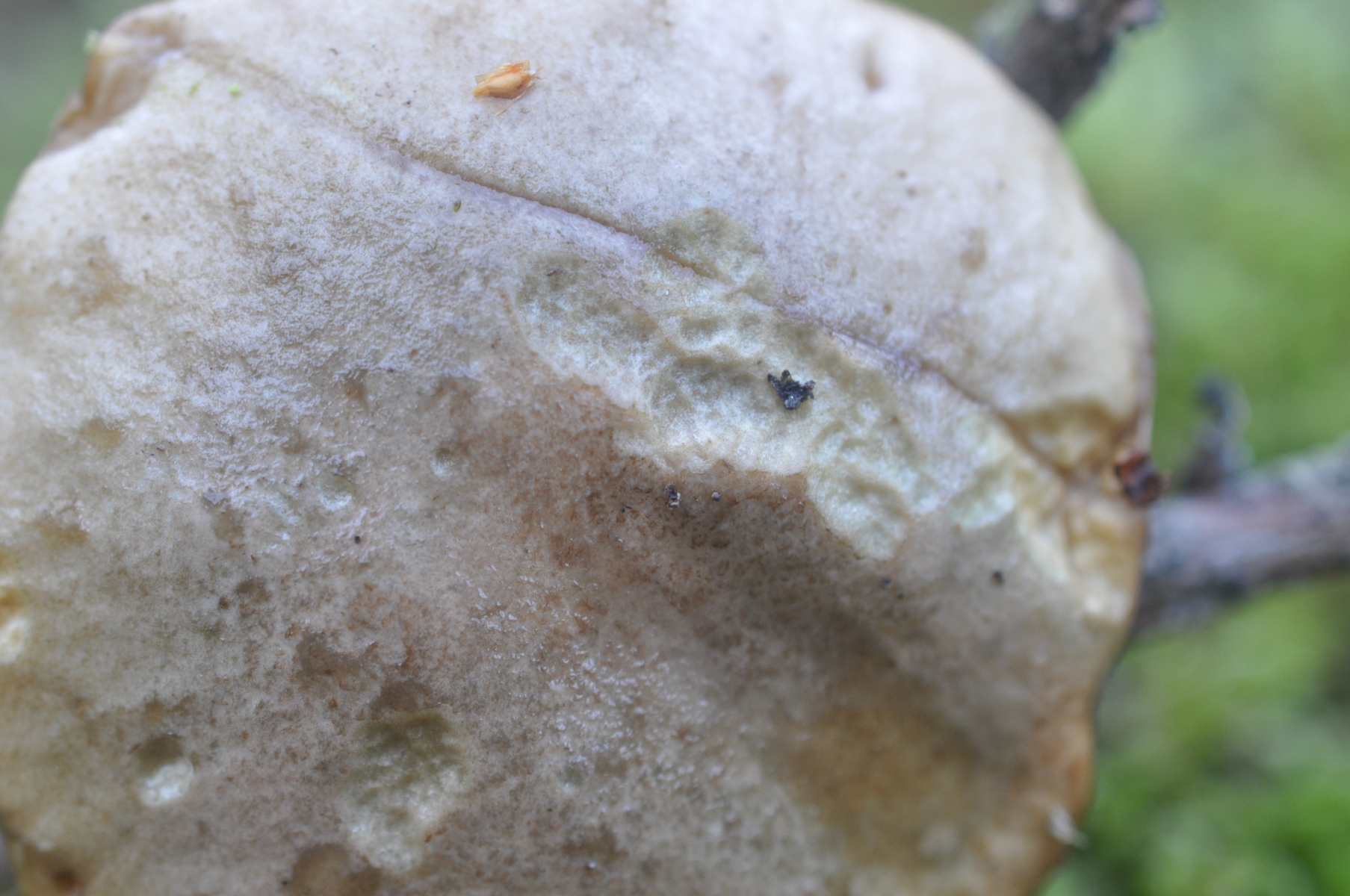Auffällig hier ist aber die extrem schwach ausgeprägte Stielschuppung. Wären die Stielschuppen einfach nur hell, könnte man - wegen den fehlenden Verfärbungen im Schnitt - entweder an Leccinum holopus oder Leccinum scabrum (weißliche Form) denken. Daß die Stielschuppen aber so fein sind, bzw. stellenweise nahezu fehlen, das ist schon sehr merkwürdig.