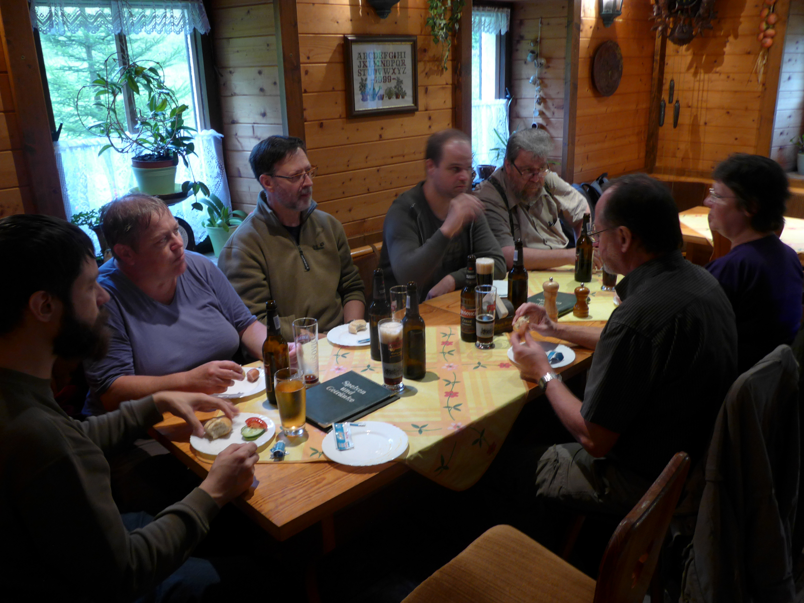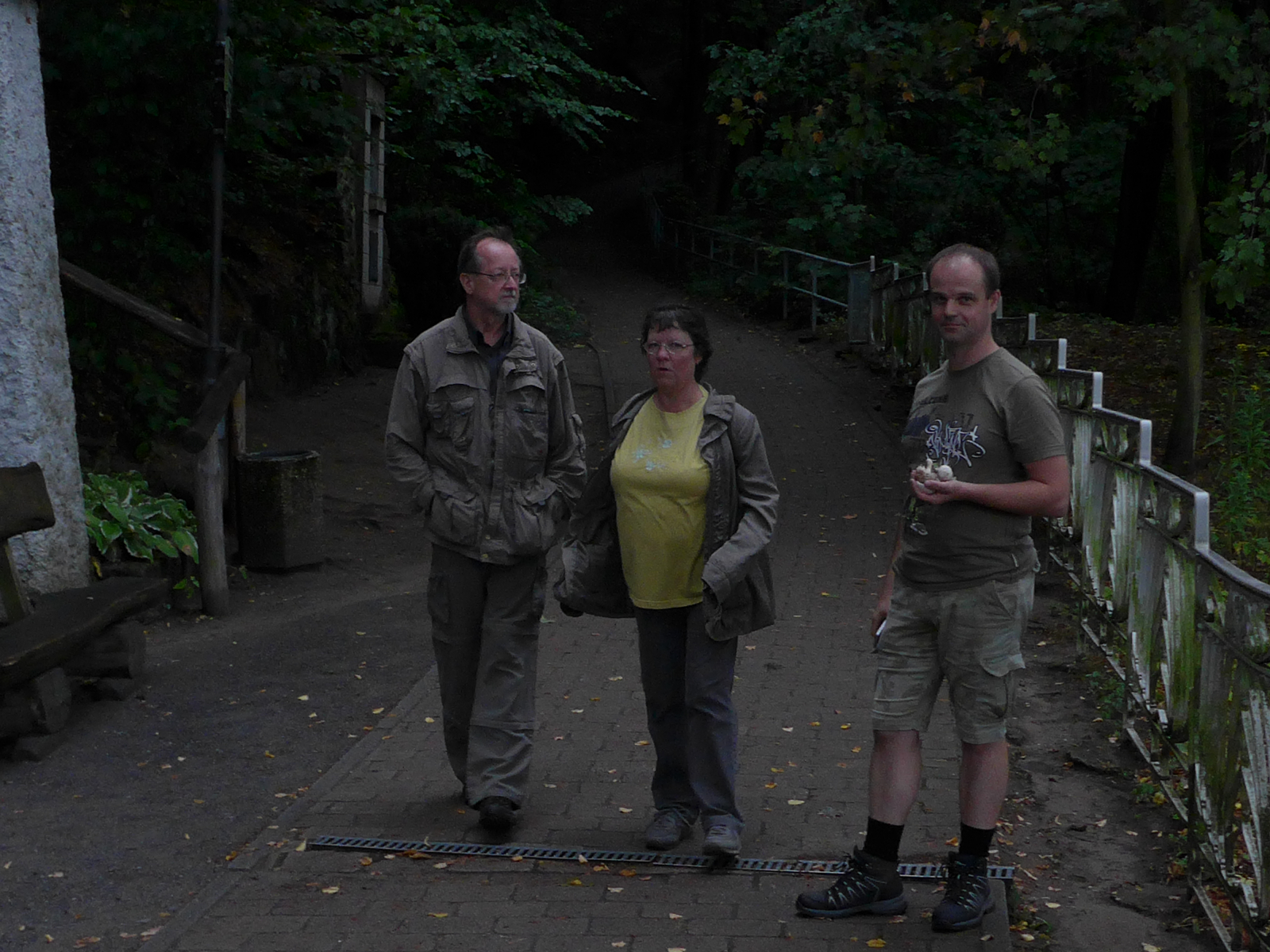 Es kamen lamproderma-Ulla, ihr Lebensgefährte hengu, Thomas Rödel, Drosophila-Verena und Hans, welche die weite Fahrt nicht scheuten. Bibliothekar-Stefan reiste Samstag früh an. Als TAgesgäste kamen Heidrun und Toffel. Als die ersten Gäste ankamen beschlossen wir einen kleinen Spaziergang zu machen. Der Regen hatte inzwischen nachgelassen. So konnte ich einiges über Ostrau, einem Ortsteil von Bad Schandau erzählen.