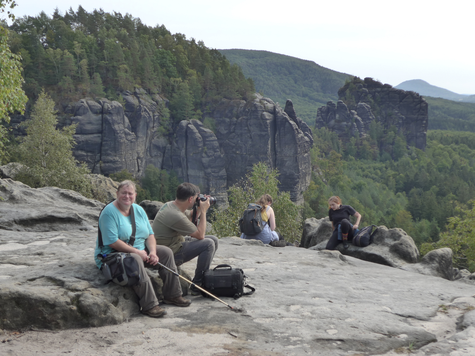 Ich hatte mir den "Wildschützensteig" als Aufstieg zur Schrammsteinkette ausgesucht. Bilder davon haben Hans und Verena. Vielleicht posten sie noch 1-2 Impressionen. Oben angekommen, brauchten einige der Teilnehmer eine kurze Verschnaufpause (Bild von hengu).