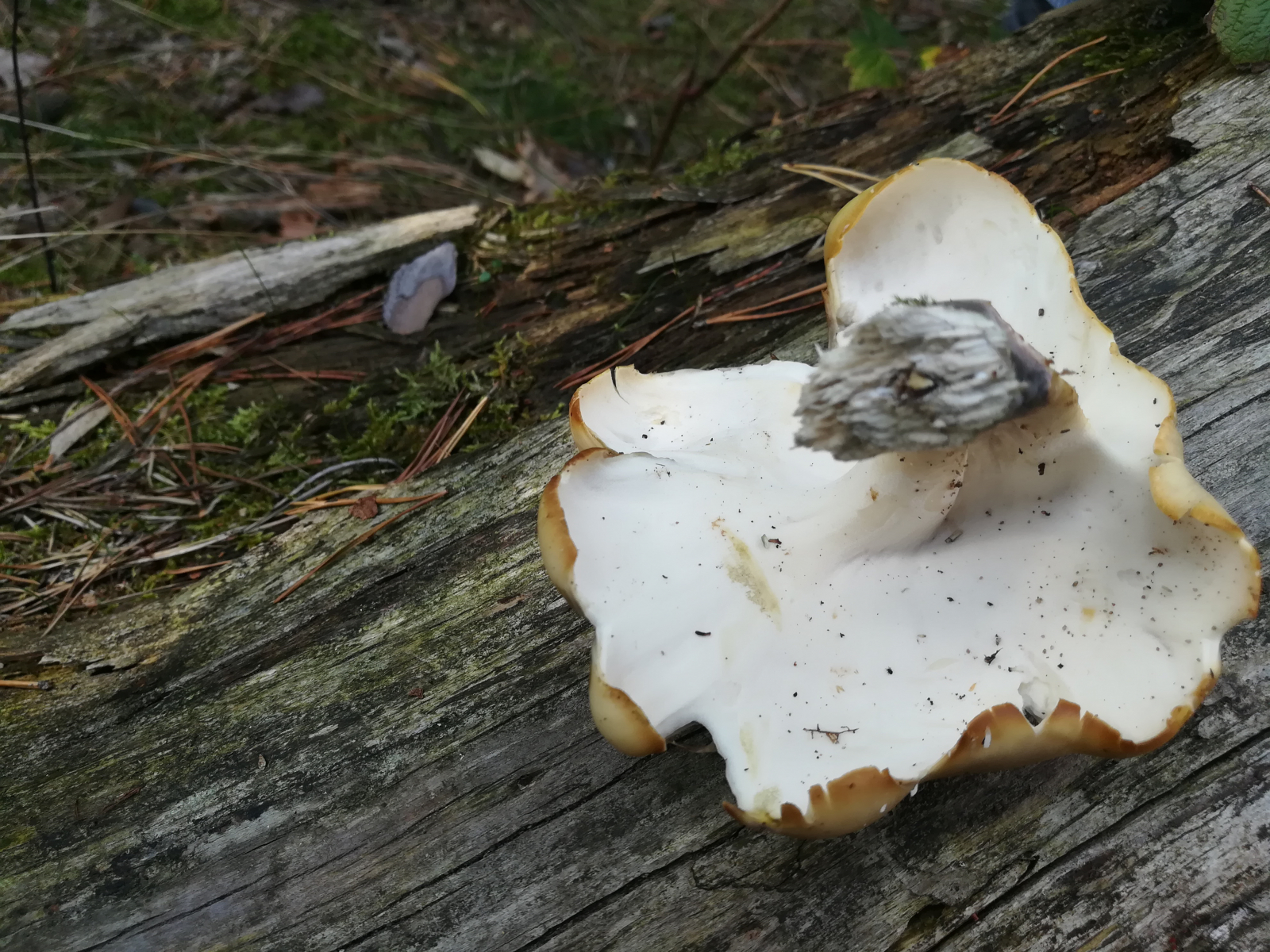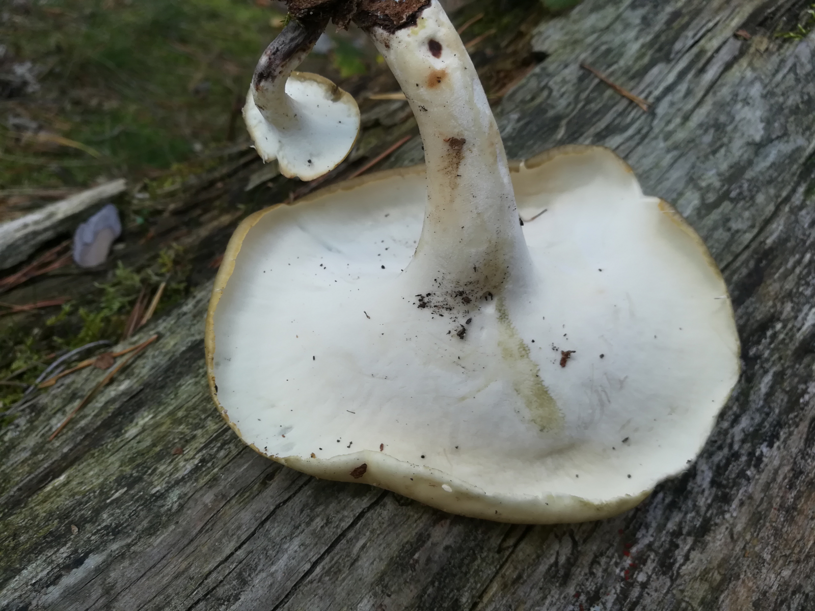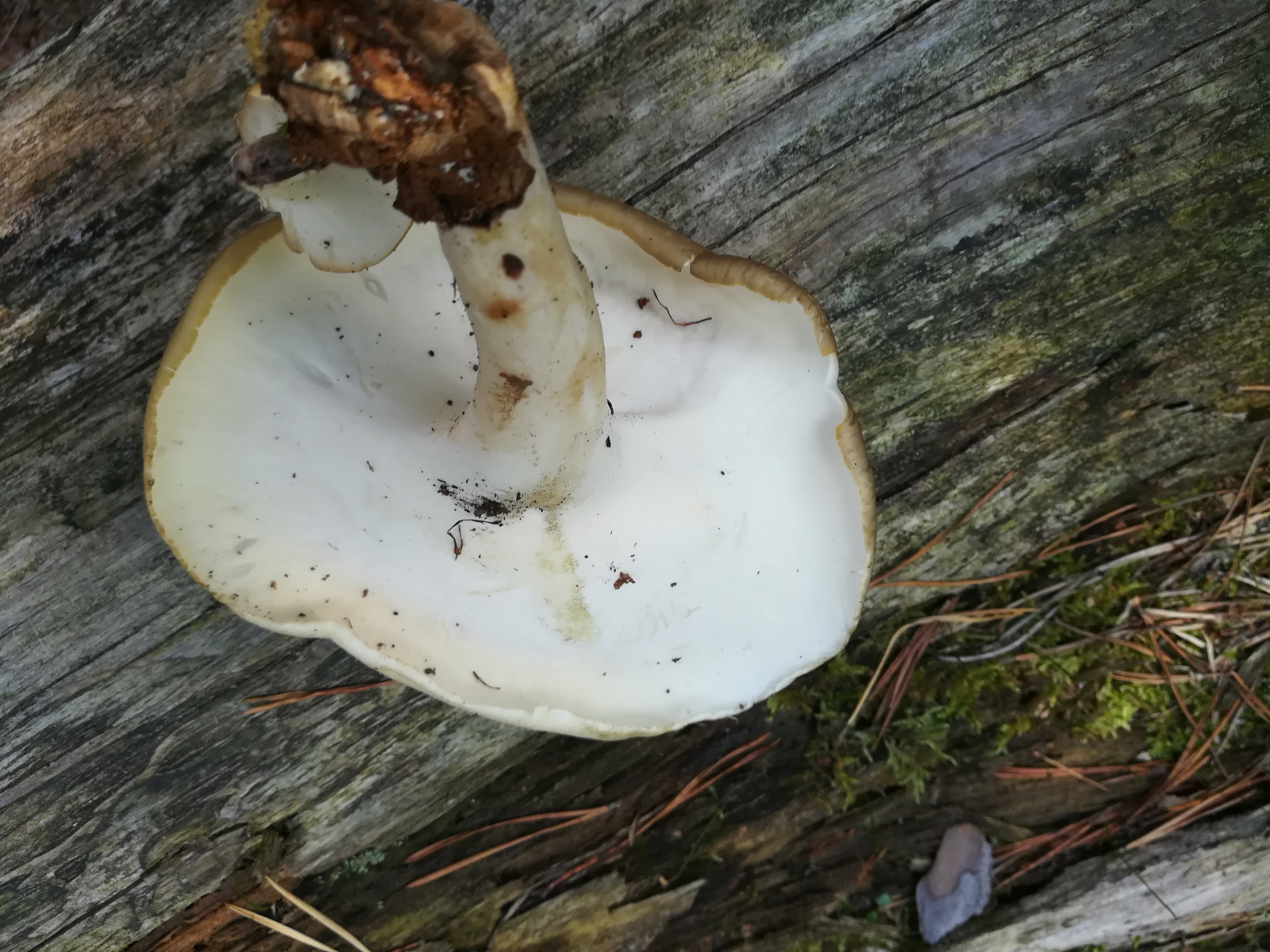 Es gibt aber einige weitere Arten, die da auch noch reinspielen können, und nicht alle als "Polyporus melanopus" fehlbestimmten Kollektionen im Netz zeigen automatisch Polyporus badius.