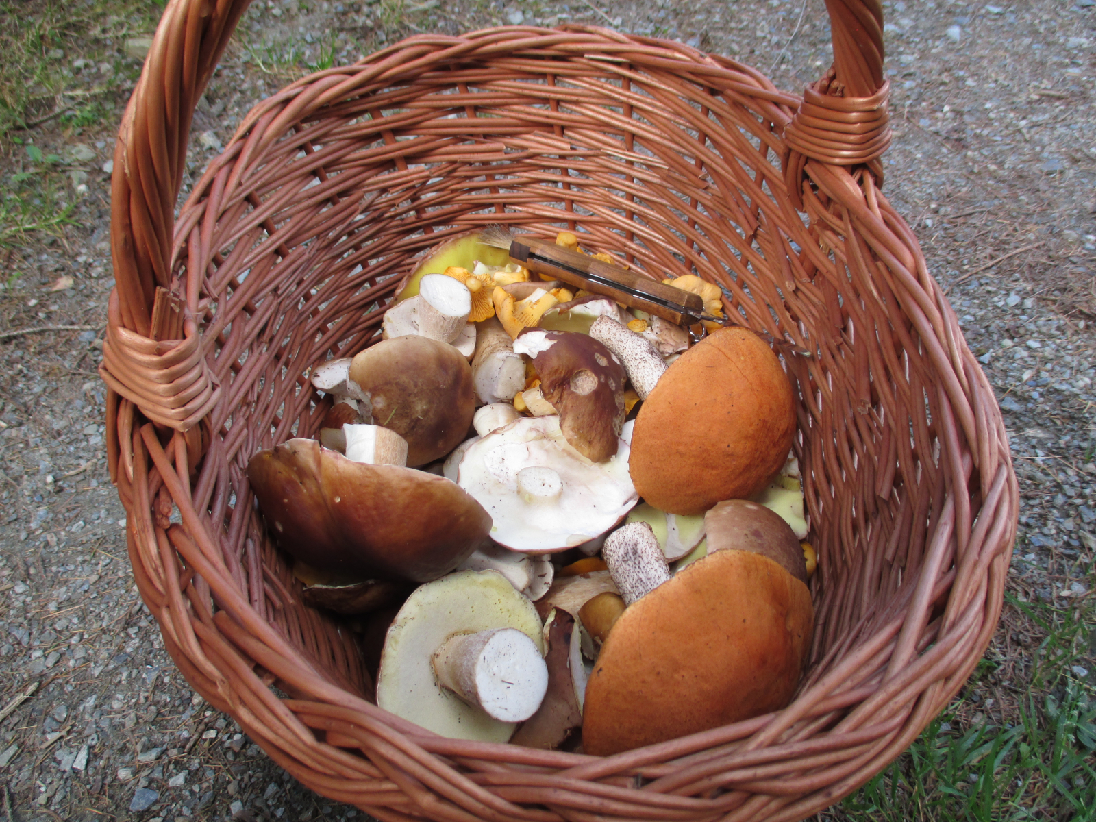 Ich habe mich heute auf das Sammeln von Steinpilzen, Maronenröhrlingen, Eierschwammerl und Rotkappen beschränkt. Zum Abschluss gibts einen Blick in den Korb.