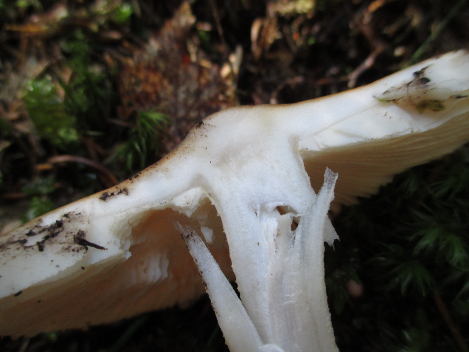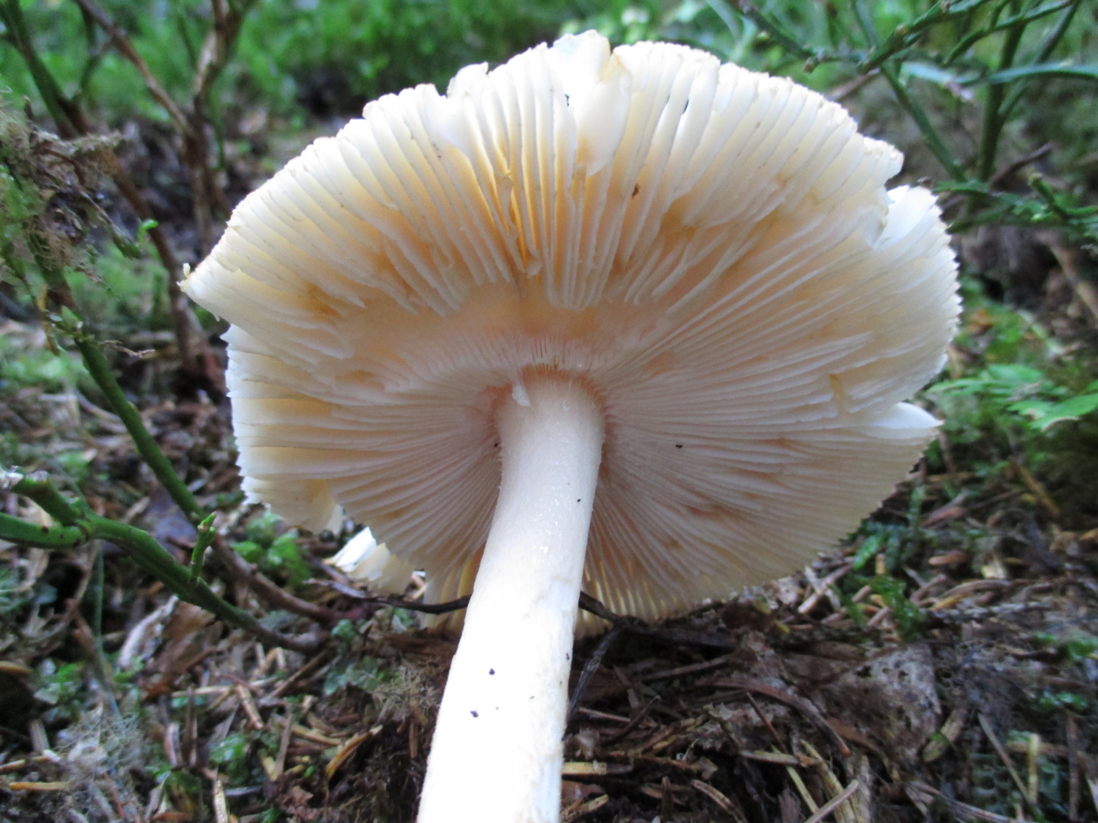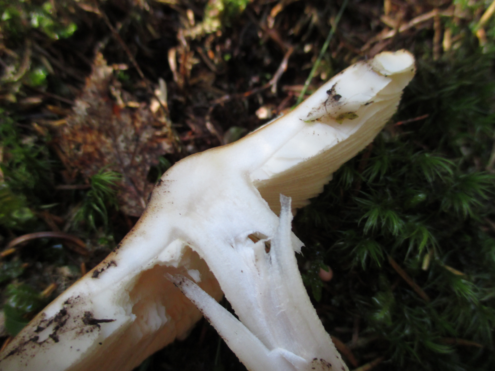 Lamellen: hell, cremefarben, etwas gegabelt. Fast frei, ganz leicht angewachsen.