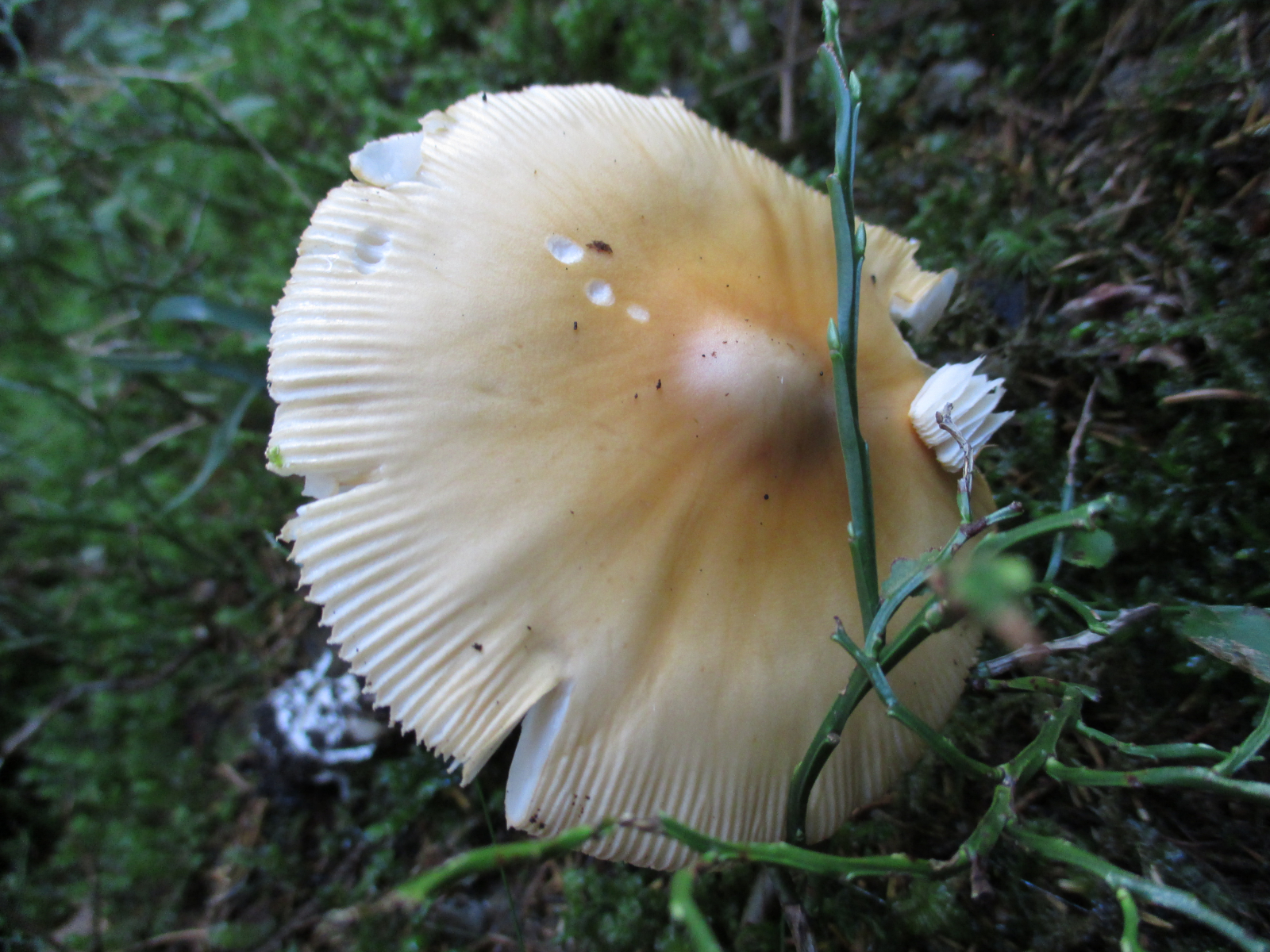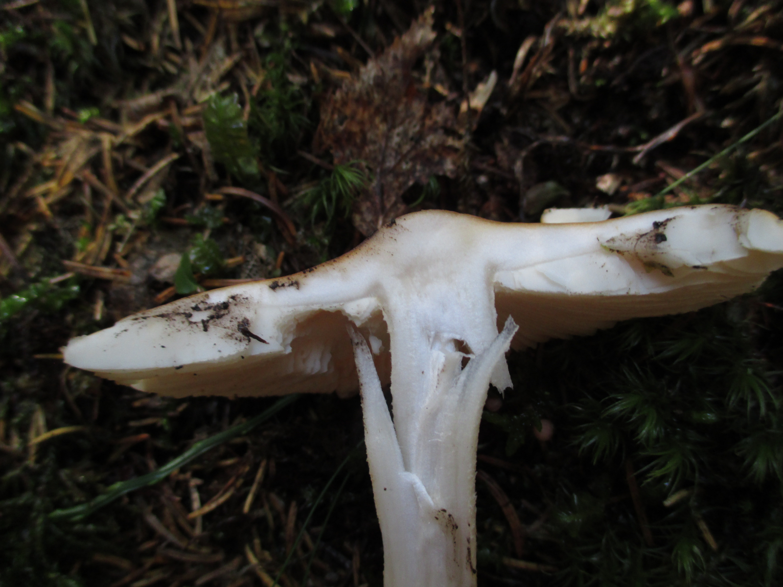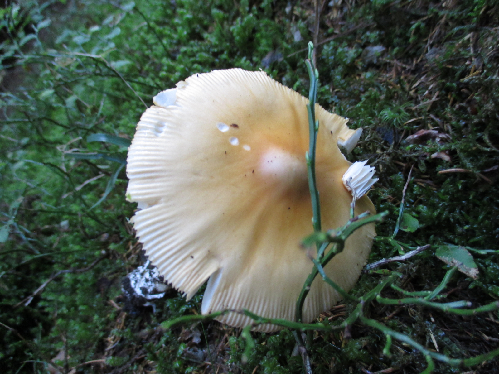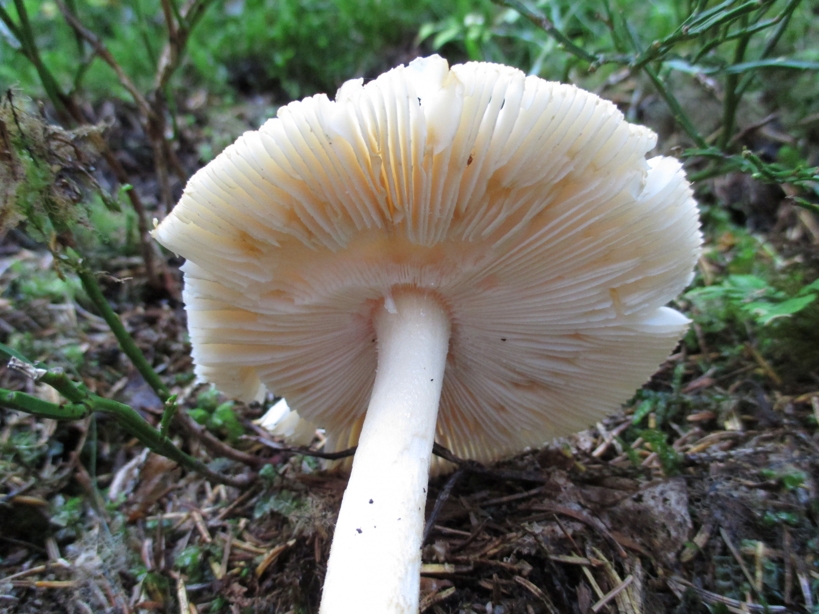 Lamellen: hell, cremefarben, etwas gegabelt. Fast frei, ganz leicht angewachsen.