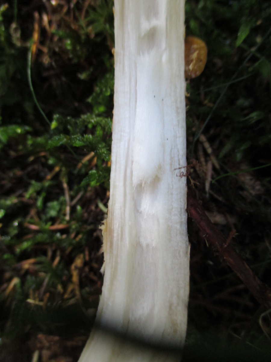 Stiel: wattig hohl, etwas orange genattert, Scheide weiß.
