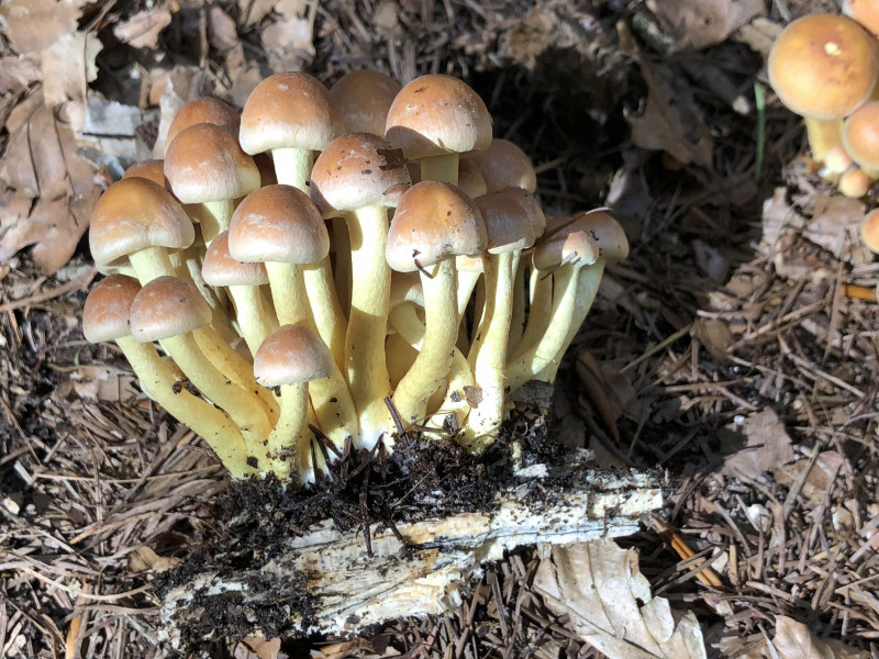 um welche Pilze handelt es sich hier? Waren heute sehr zahlreich zu finden, wachsen offensichtlich auf Holz. Büschelig. Schwefelgelber Stiel.