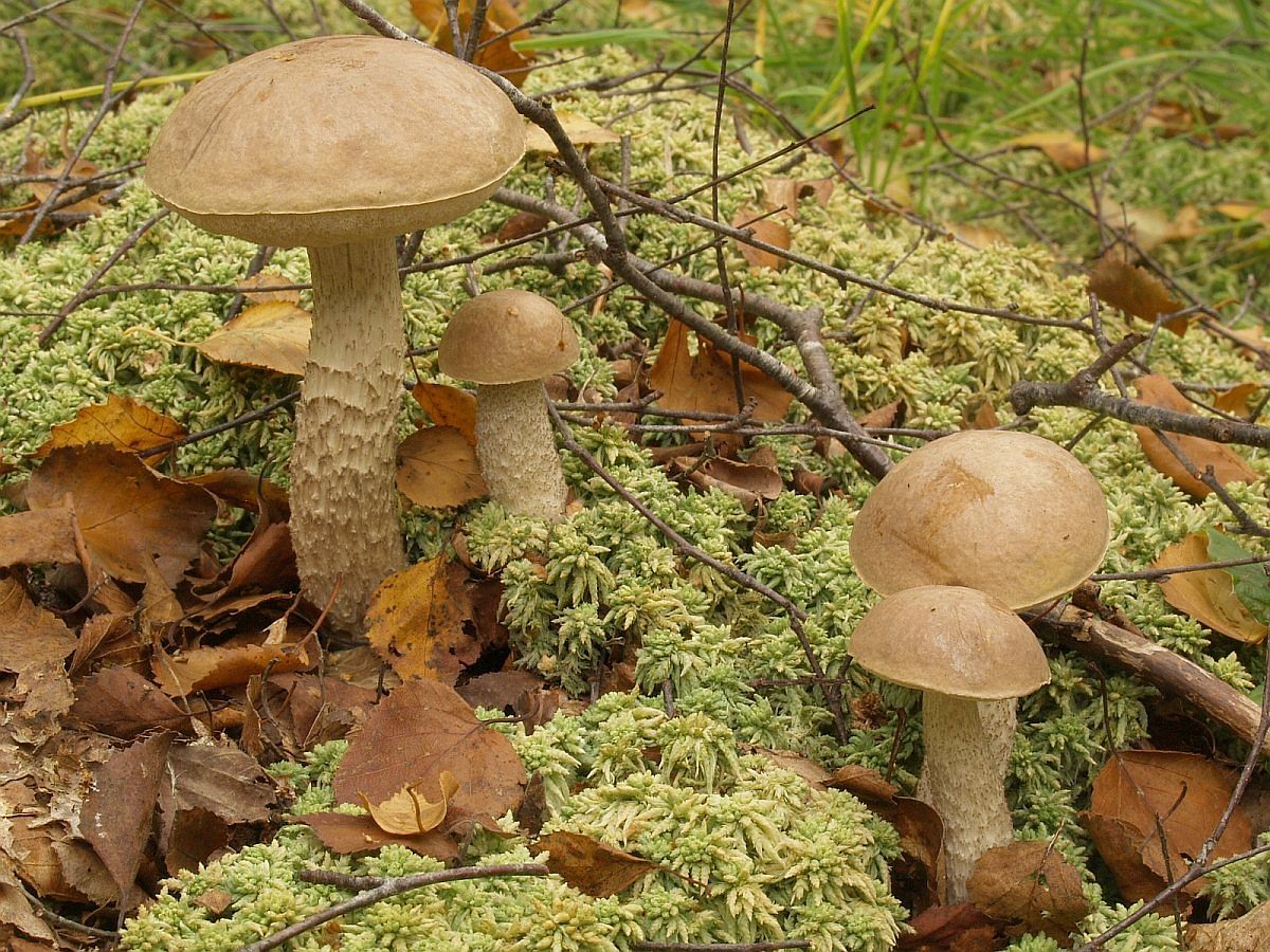 Zahlreiche Wollstielige Raufuß-Röhrlinge (Leccinum cyaneobasileucum)