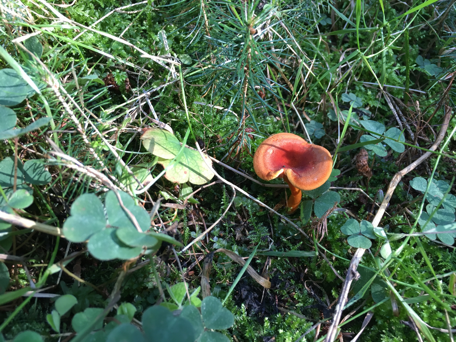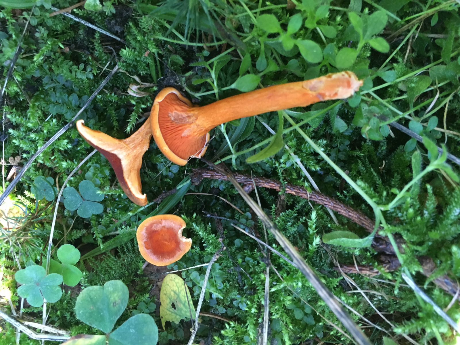 Pilz 4 kannst Du mit Hygrophoropsis aurantiaca, dem Flaschen Pfifferling vergleichen.