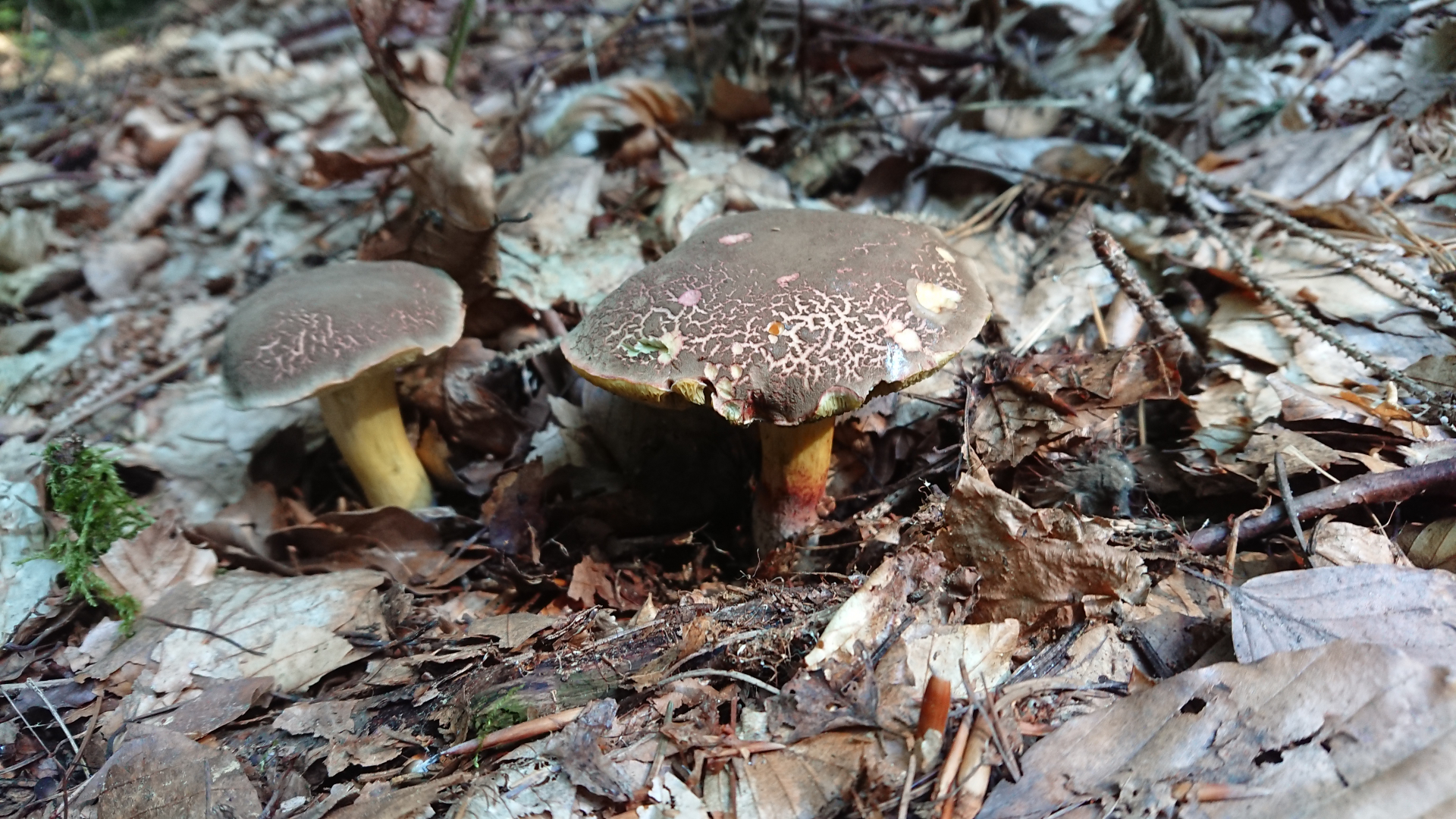 Aufgrund des roten Fußes bei dem einen Exemplar dachte ich erst wieder an Rotfuß-Röhrling, aber die färben sich doch nicht so extrem, oder?