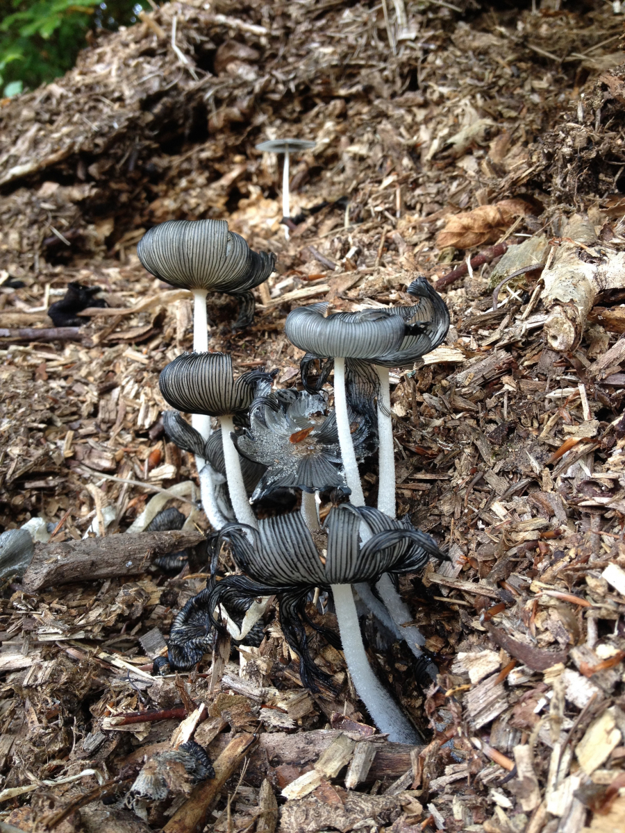 heute habe ich unerwartet ein paar Schwarzsporer auf Hackschnitzeln (Erle) gefunden. Ich tippe auf Tintlinge, bin aber unsicher. Ich habe gelernt, dass der Schopftintling der einzige ist, der erst rot und dann schwarz wird und demzufolge in eine andere Gattung gestellt werden soll, oder wurde, oder so ähnlich. Nun ist mein Kandidat aber auch so ein Fall von Pilz, der bevor er schwarz wird, ein rotes Aussehen bekommt.