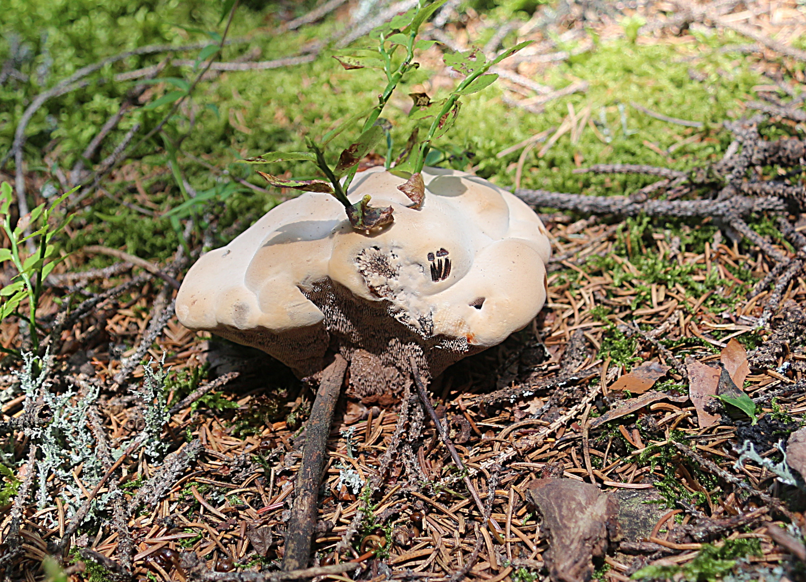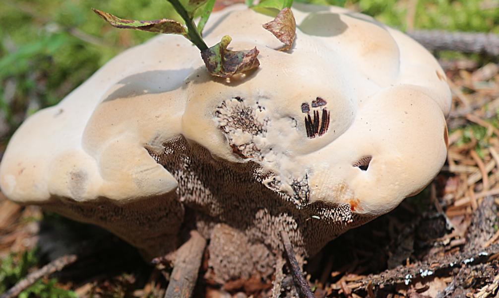 Ich habe die Antwort von Irmgard inzwischen auch gelesen, und finde das schon einleuchtend, was sie schreibt. Wenn sie Hydnellum scrobiculatum gut kennt, und hier die Verbindung herstellen kann, warum nicht? Irgendwann wären die zerklüfteten Kämme und Schluchten aus dem Hutfilz hervorgebrochen, nur dazu hatte der Fruchtkörper nicht mehr die Zeit. Ebensowenig wie zur Ausbildung von voll pigmentierten Sporen.