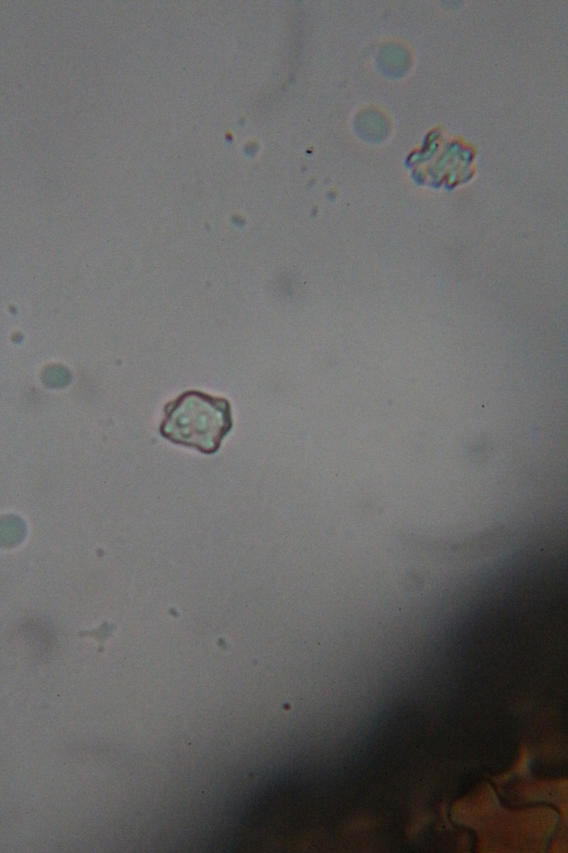Irmgard hat sich selbstverständlich auch mehrere angesehen, das sind Sporen vom vorgelegten Pilze. In der Nähe standen keine weiteren Stachelinge, der andere Fund stammt nicht aus diesem Bereich. An den Sporen gibt es nix zu deuteln, ich habe nachmikroskopiert und weitere gefunden,