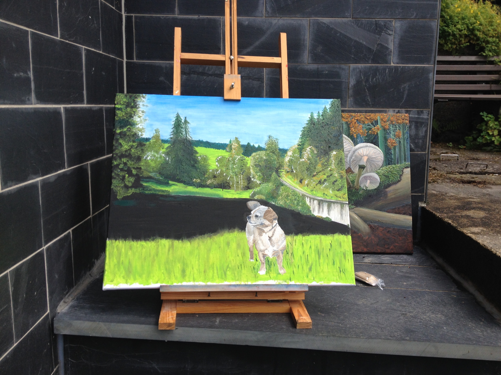 Der Nachteil der Ölmalerei ist, dass die Keilrahmen Platz brauchen. Die meisten Bilder waren aber Auftragswerke und hängen bei der Familie oder guten Freunden. Um das Haus herum liegen bemalte Steine. Da geht die Farbe nach 2-3 Jahren ab und man kann sie nacharbeiten. Auch manche Bilder nehme ich mir noch mal vor, wenn nicht zufrieden bin und gerade kein neues Bild ansteht. Unter dem Busch neben dem Esel fehlt beispielsweise der Schatten. Eigentlich geht da immer noch was.