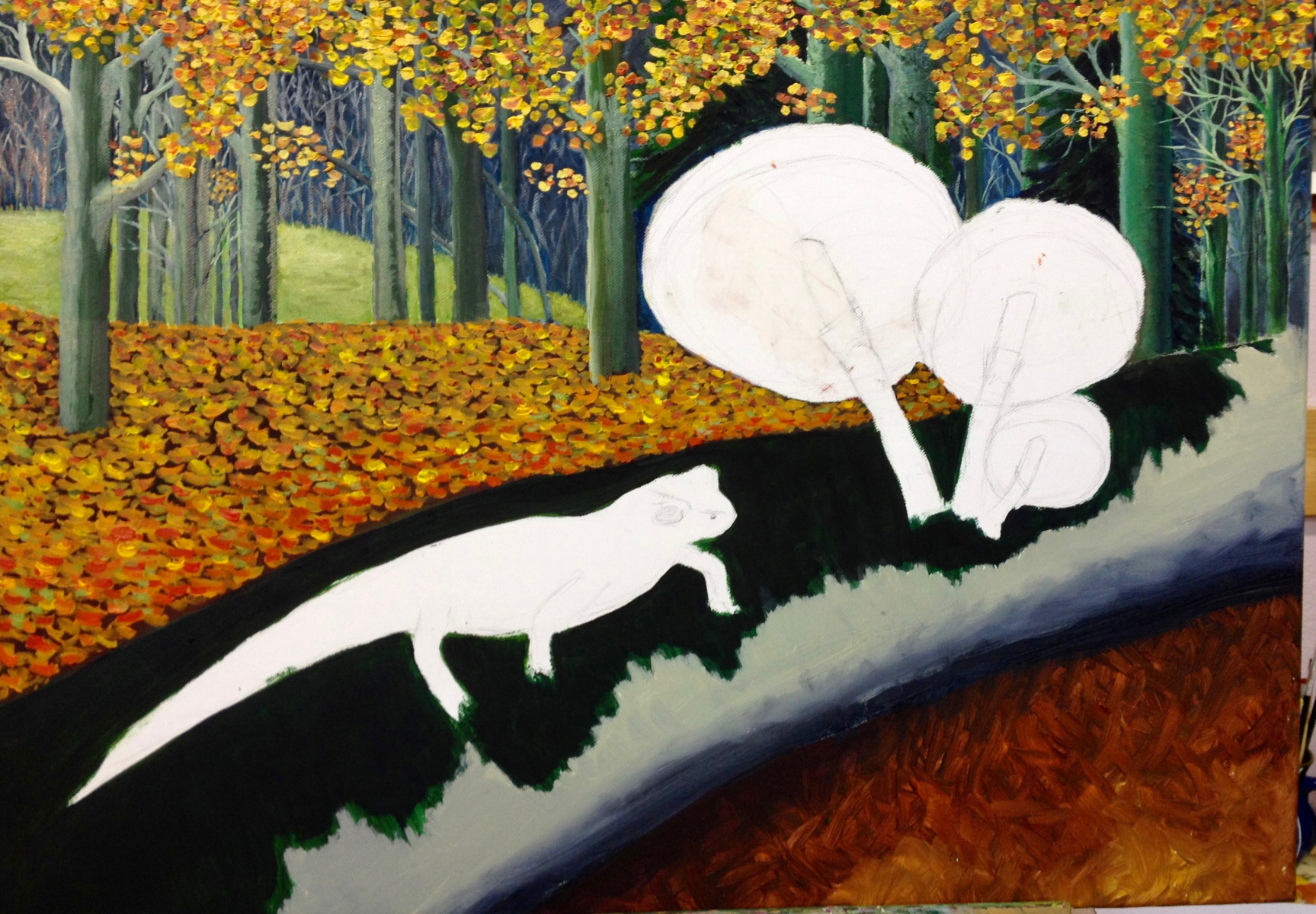 Übrigens gefallen mir besonders gut das Winterbild und die Landschaft mit dem Dorf im Tal. Auch die Oudemännchen mit dem Salamander sind weit vorne! Am wenigsten gefällt mir die Tänzerin. Die Natur, also Landschaften, Tiere, Pflanzen, Pilze, das ist einfach dein Metier! Da merkt man die Liebe zu dem, was du malst, und daß du es kennst. Du mußt dich nicht verbiegen.