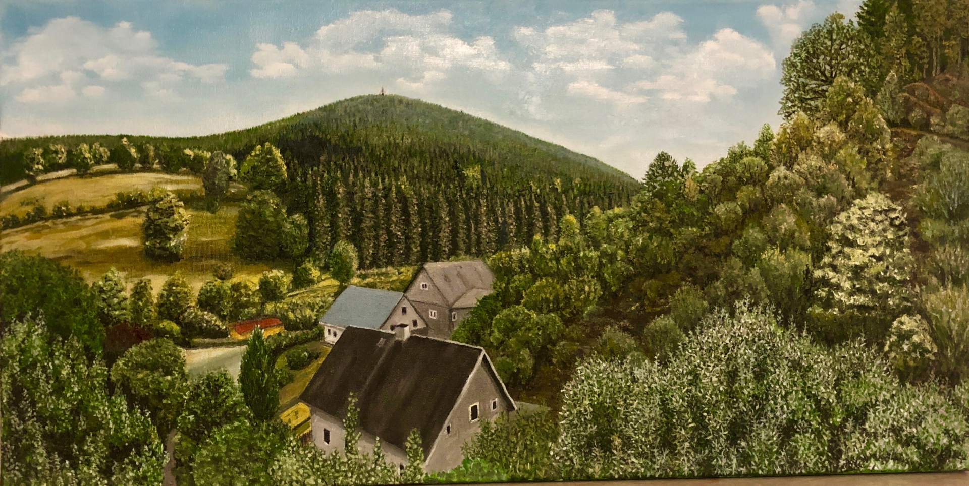 Bei dem Panoramabild hatte ich übrigens nicht das fertige Bild eingestellt. Ich hatte es noch einmal bearbeitet. Aber so richtig fertig ist es noch nicht. So sieht es jetzt aus. Ich glaube, dass die hellen Flächen im Hintergrund noch mehr leuchten müssen. Bestimmt nehme ich mir das noch mal vor. Firnis kommt jedenfalls erst einmal nicht drauf==Gnolm7.